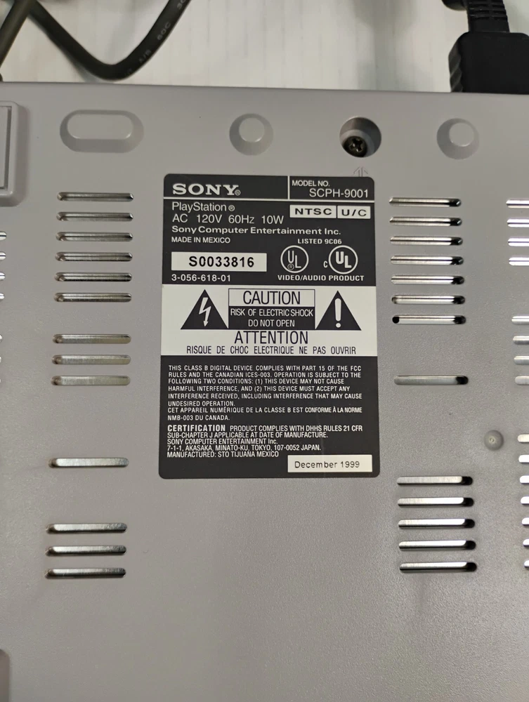 Platform:Sony PlayStation 1Model:Sony PlayStation 1Brand:SonyMPN:SCPH-9001Color:GrayConnectivity:Composite RCAYear Manufactured:1999Type:Home ConsoleRegion Code:NTSC-U/C (US/Canada)