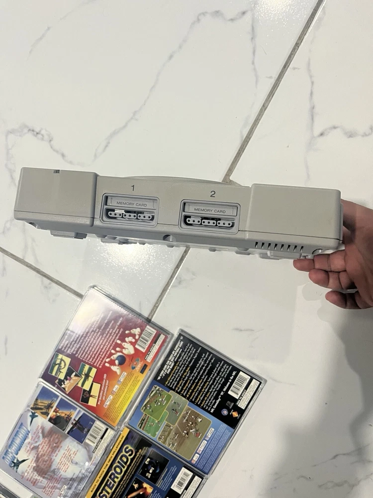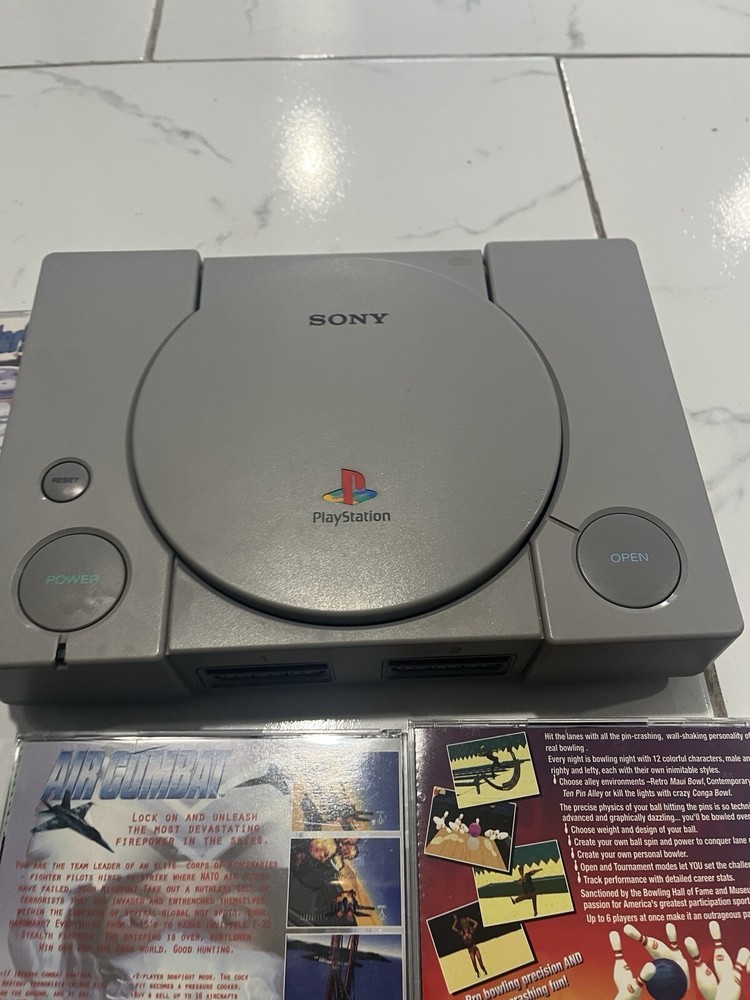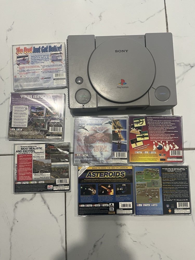 No cables included, controller or memory card Just the console and games Has been tested and works Yellowing in the front of the console. Two of the games cases are cracked or broken as seen in photos All discs have been tested and work and are in very good condition