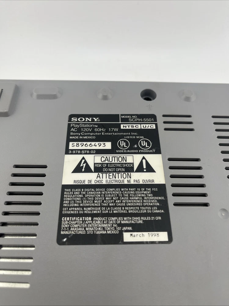 Console has been tested and working. Some games can use some resurfacing. Sony Playstation 1 PS1 Console Bundle SCPH-5501 with 10 games. This home console, manufactured in 1998 by Sony, is in a gray color and has a storage capacity of 32MB. It belongs to the Sony PlayStation 1 platform and uses Composite RCA connectivity. The console is NTSC-U/C (US/Canada) region coded and comes with various games.
