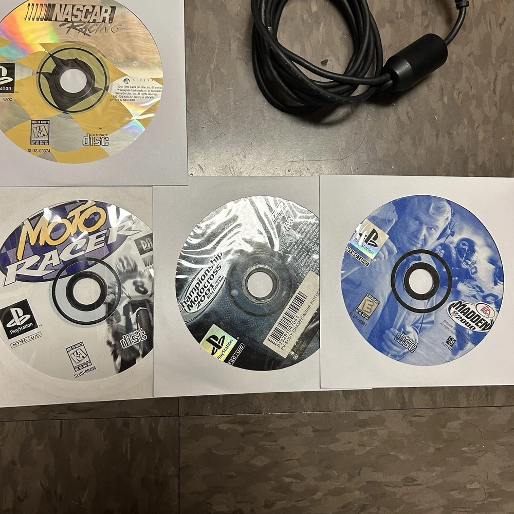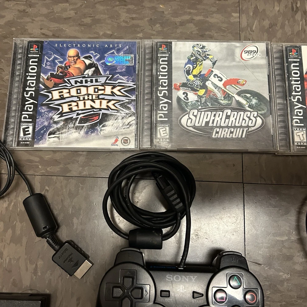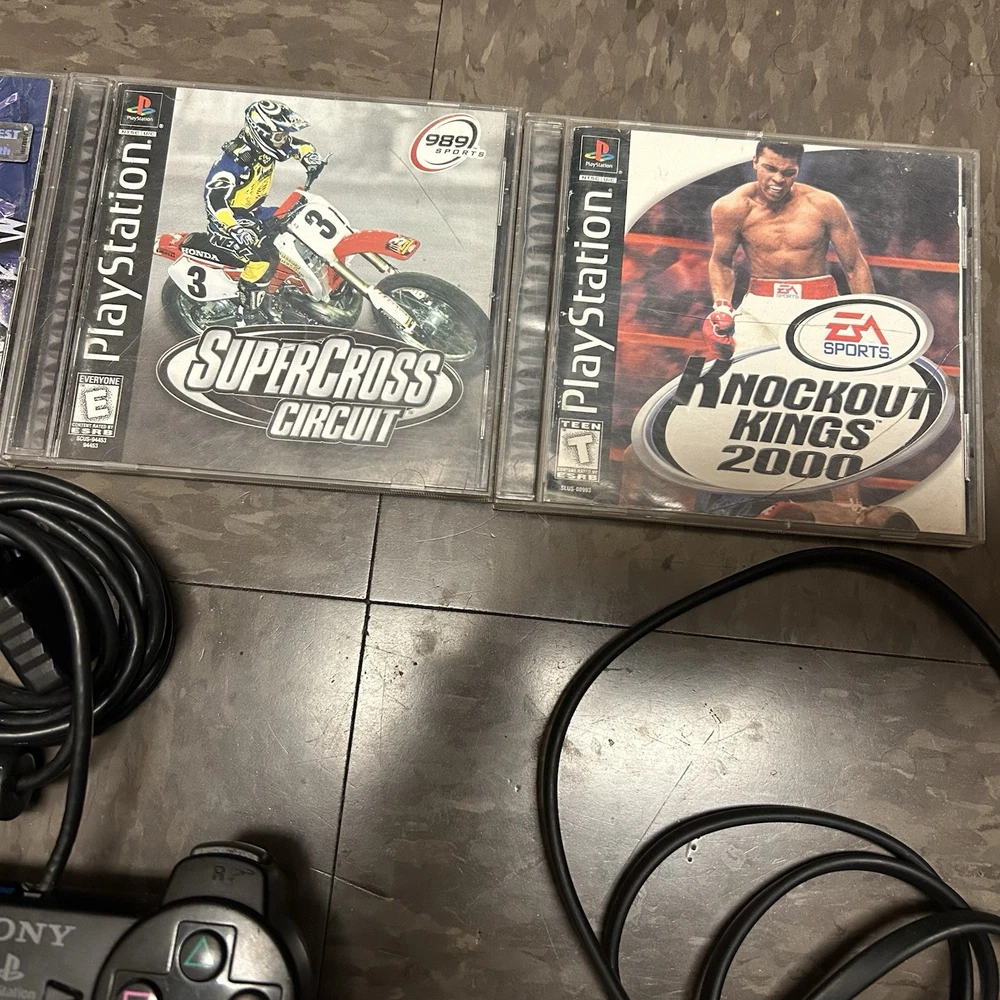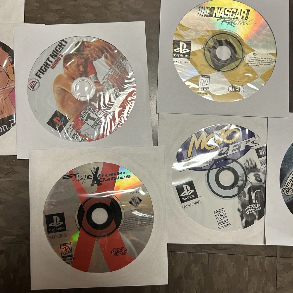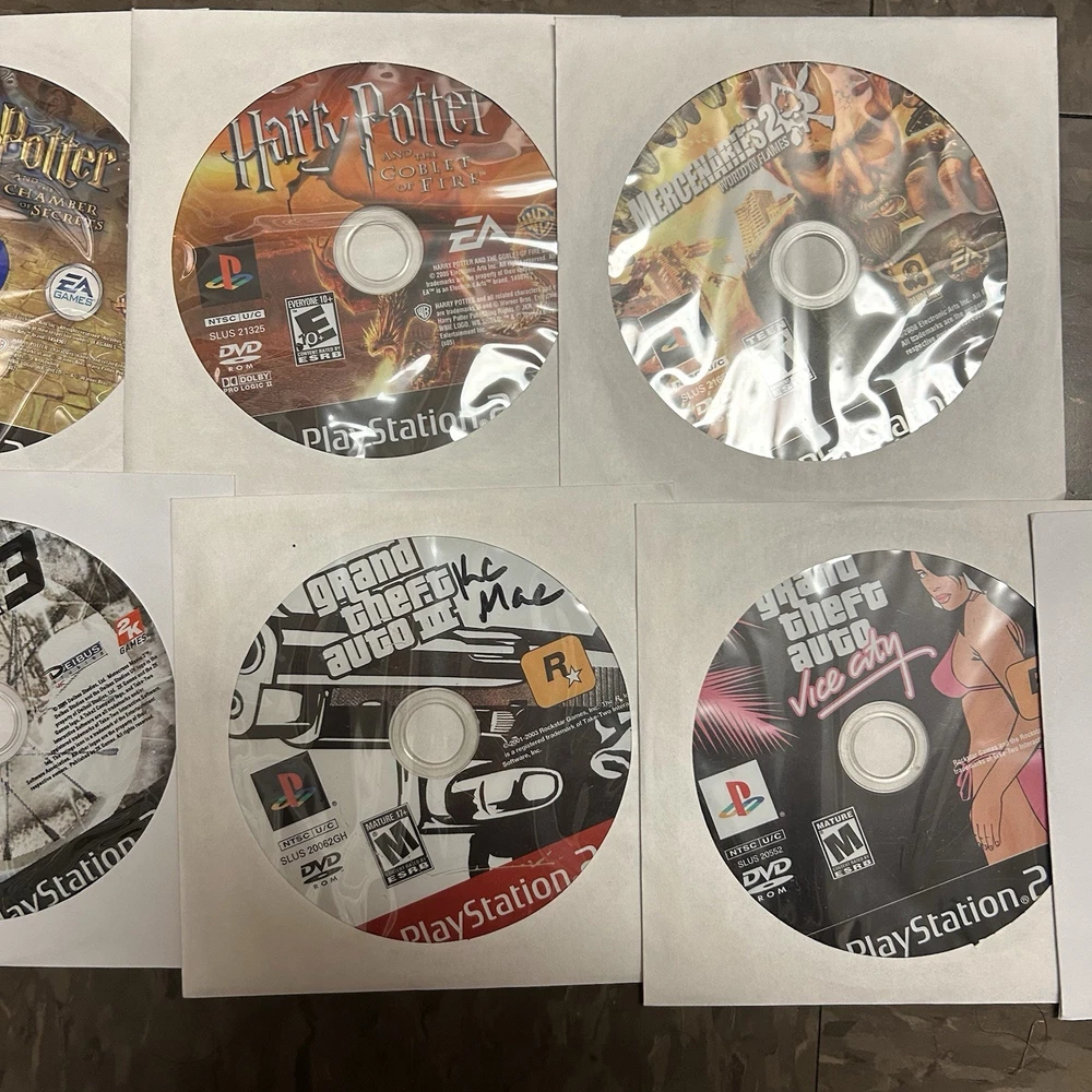 The games you will get in this lot include: PS1 Games: Moto Racer PS1 Disc ESPN Extreme Games PS1 Disc Nascar Racing PS1 Disc Champion Motocross 2001 PS1 Disc Knockout Kings 2000 CIB PS1 Supercross Circuit CIB PS1 NHL Rock The Rink PS1 CIB PS2 Games: Fantastic 4 Disc Harry Potter and the Chamber of Secrets Disc Harry Potter and the Goblet of Fire Disc Mercenaries 2 Disc Motocross Mania 3 Disc Need for Speed Underground 2 Disc (No Longer Included) Grand Theft Auto 3 Greatest Hits Disc Grand Theft Auto Vice City Disc Fight Night Round 3 Greatest Hits Disc Nascar Thunder 2004 CIB MVP 06 NCAA Baseball CIB Arena Football CIB MLB Slugfest 2004 Case & Disc Championship Paintball 2009 CIB (Disc has visible hairline cracks) Sprint Cars Road to Knoxville CIB Super Trucks Racing CIB Truecrime Streets of LA CIB Combat Elite WWII Paratroopers CIB Big Mutha Truckers CIB Winter 2002 Jampack CIB Army Men Soldiers of Misfortune CIB Finding Nemo OEM Case & Disc Mafia OEM Case & Disc Shaun White Snowboarding CIB Antigrav CIB Cabelas Trophy Bucks OEM Case & Disc Cabelas Big Game Hunter Greatest Hits CIB Salt Lake 2002 CIB The Godfather The Game CIB (No Longer Included) Madden 07 CIB Madden 2005 CIB Madden 2005 CIB Fight Night Round 2 Greatest Hits CIB Medal of Honor Rising Sun CIB Madden NFL 06 CIB Socom 2 US Navy Seals CIB The Sims 2 PS2 Greatest Hits OEM Case & Disc