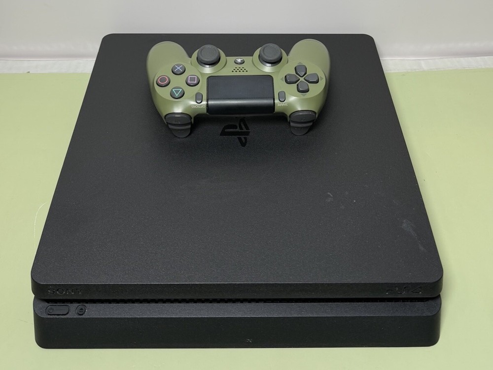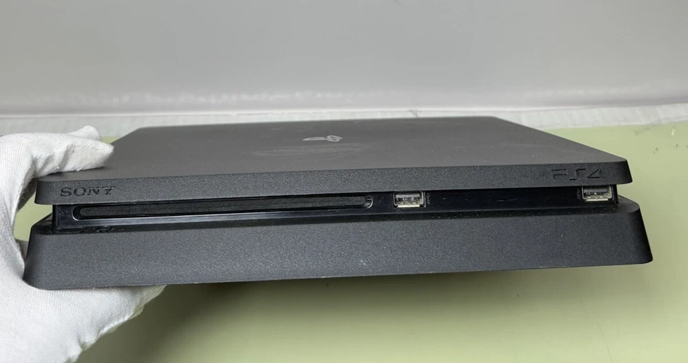 Preowned Sony PlayStation 4 Slim 1TB Black Home Gaming Console Great working and cosmetic condition. Has been fully tested and reset. Ready to use. Shows signs of minor use. There are some scratches on the body. Comes with the controller, power cable, HDMI and USB cable for the controller. Please see the photos for the best condition. FIRMWARE QUESTIONS WILL NOT BE ANSWERED