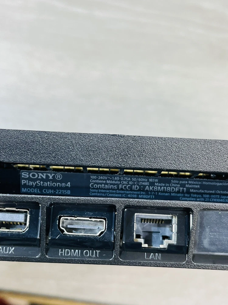 Country/Region of Manufacture: Japan Platform: Sony PlayStation 4 Color: Black MPN: CUH-2215B Connectivity: HDMI Type: Gaming Console Model: Sony PlayStation 4 Slim Brand: Sony Features: Blu-Ray Compatible Resolution: 1080p Storage Capacity: 1 TB Region Code: NTSC-U/C (US/Canada)