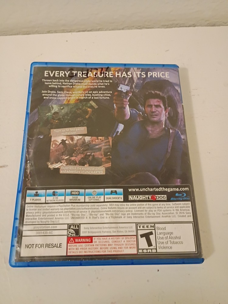 The product is a Sony PlayStation 4 game called Uncharted 4: A Thief's End, released in 2016. It belongs to the action and adventure genre, with a rating of T-Teen suitable for gamers aged 10 and above. Published by Sony PlayStation, the game is part of the Naughty Dog video game series and offers multiplayer and online playability features. The game is specifically designed for NTSC-U/C (US/Canada) region consoles, providing an exciting and immersive gaming experience for PlayStation 4 users.