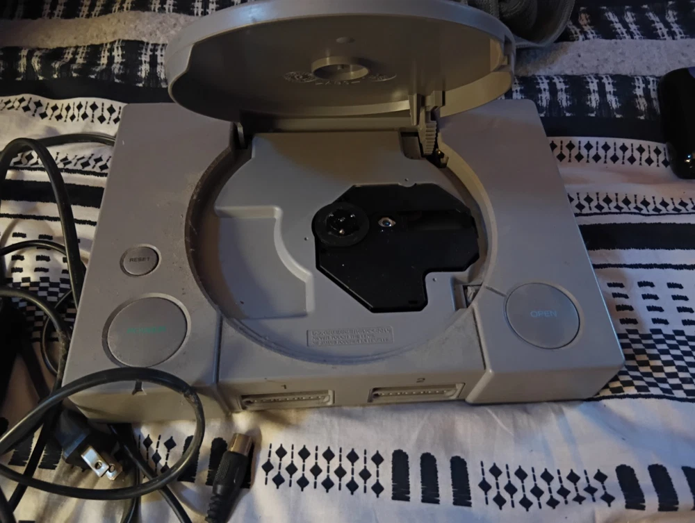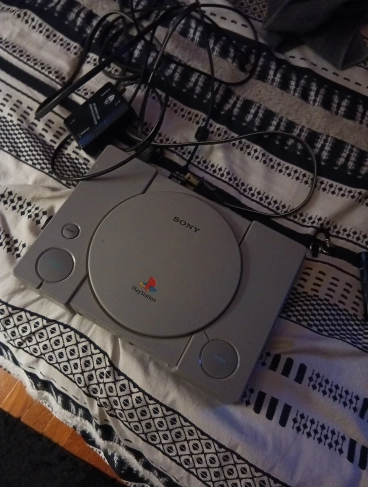 No controller! This is a Sony PlayStation Launch Edition Gray Console (SCPH-5001) that comes with all the necessary cords. It is a classic gaming console that was popular in the late 90s and early 2000s. The console has a region code of NTSC-U/C, which means it is designed for use in the US and Canada. It is a must-have for any gaming collector or enthusiast who wants to experience the nostalgia of the early days of gaming. It works