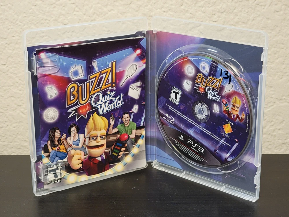 Sony Playstation 3 PS3 Buzz Quiz World TV Game CIB Complete w/ Manual Game disc is in near mint to mint condition. Manual is in mint condition. Case has a like new finish. Overall this game was well taken care of.