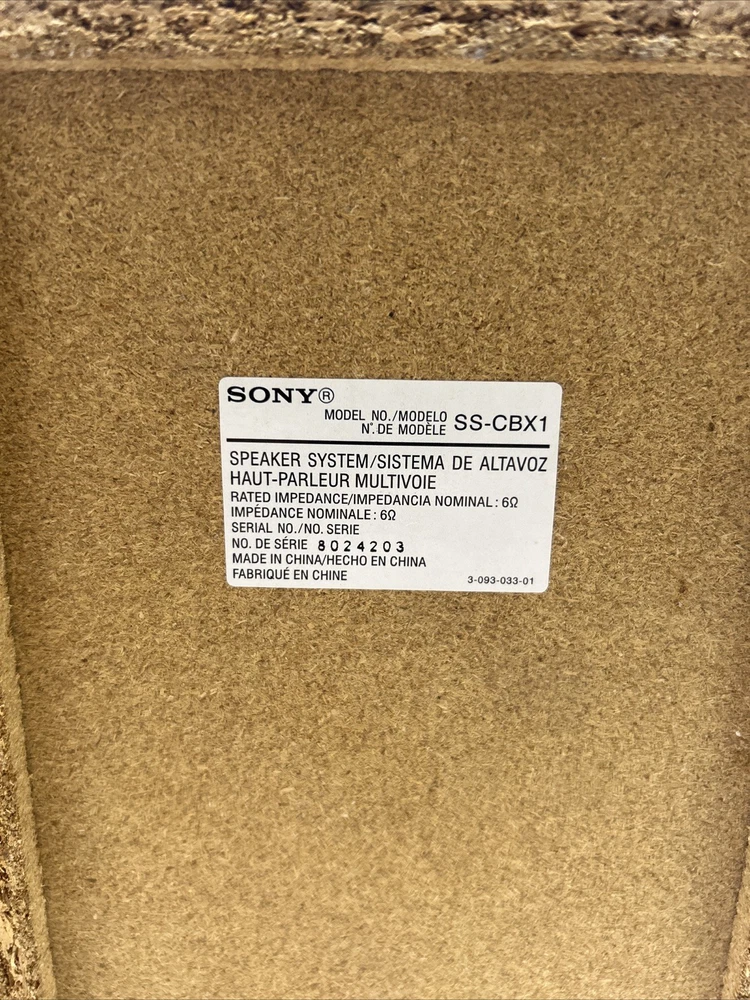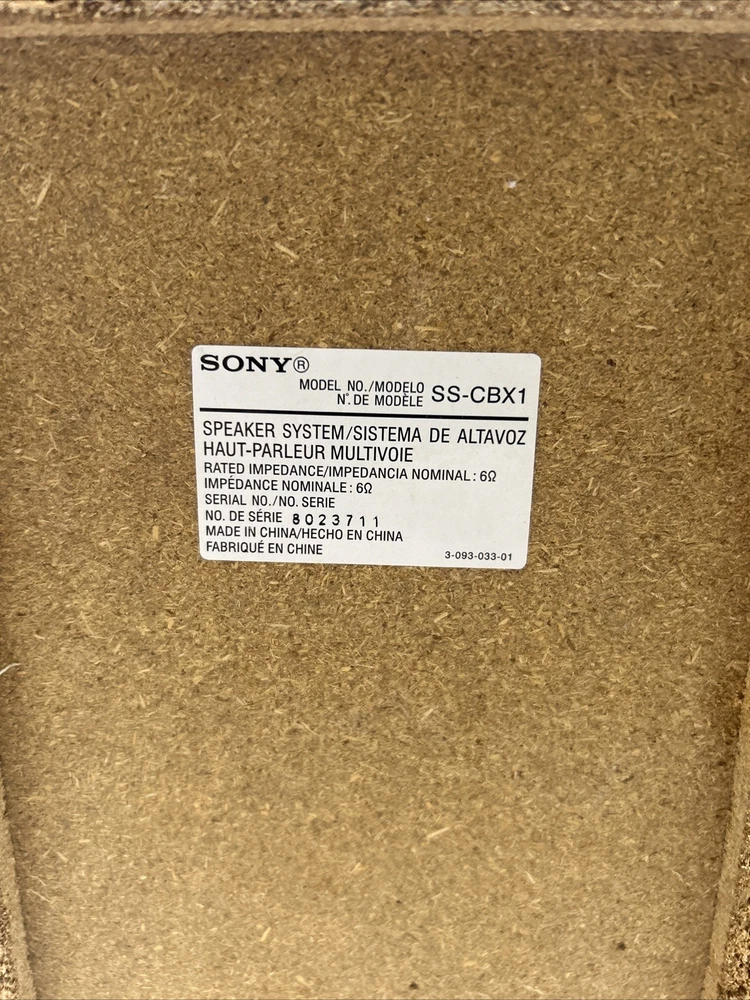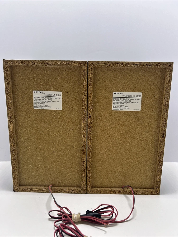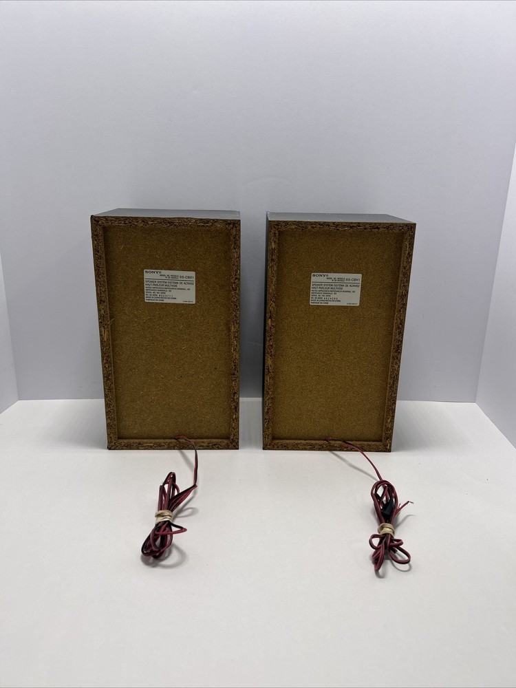 In fair cosmetic condition, does not affect the integrity of the speakers. What is pictured is exactly what you’ll receive. The Sony SS-CBX1 Home Audio Bookshelf Speakers are a set of 2 rectangular wired speakers with a 6 ohm impedance. These speakers from Sony offer high-quality sound performance for your home audio system. The SS-CBX1 model is known for its sleek design and impressive audio output, making it an excellent choice for enhancing your listening experience.