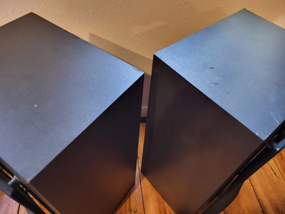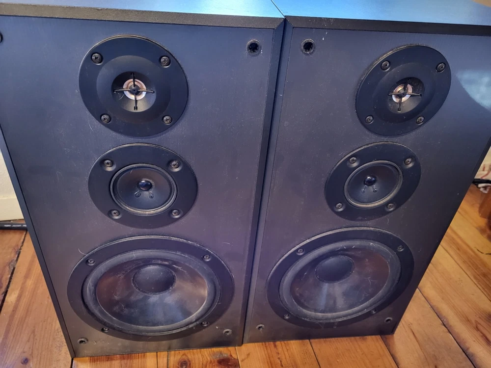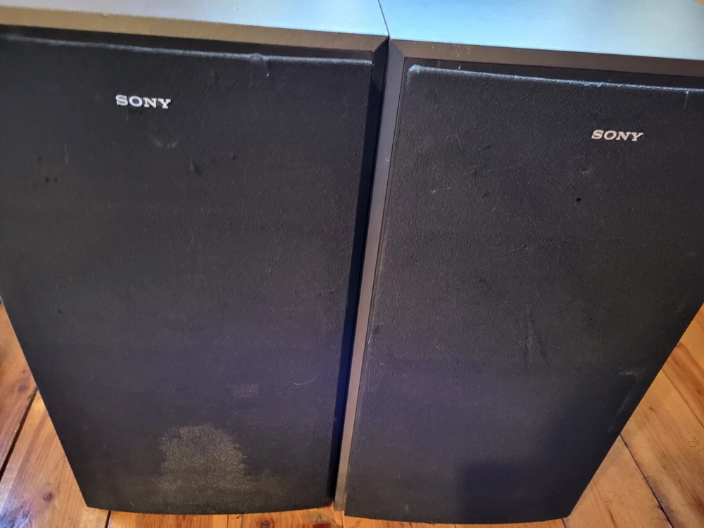 Works great, sound decent for a small form factor. Speakers in okay cosmetic condition has some peeling wrap on the edges.