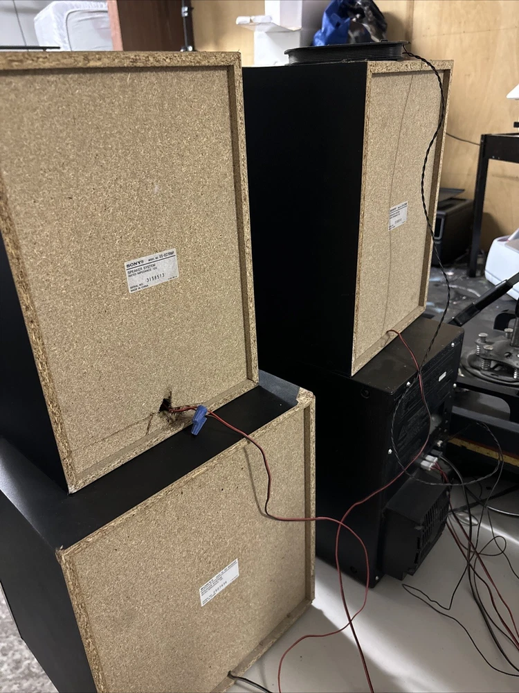 Used Sony system , 2 speakers and one subwoofer One speaker missing cover No remote Connects to older iPod/phone , aux and CD Msg me for any questions !