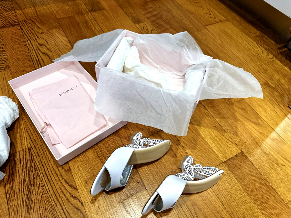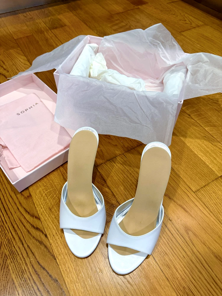 Paloma has had a makeover this season! With a transparent plexi wedge heel crafted in the shape of layered butterfly wings and adorned with crystals, this wedged mule has a simple upper and is crafted from ivory satin! Materials: Upper: 100% Textile; Outsole: 100% Leather Heel Height: 100mm Handmade In: Spain