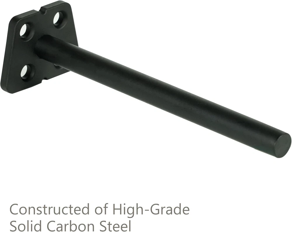 About this item Rod Length: 10” | Diameter: 1/2”, Backplate Width:2” | Tall: 1-1/2”. Perfect for shelves 11"-14" deep and 1 -3/4 to 2-1/2 inch thick ACCURACY- Precision laser-welded and a custom-made Dowel Jig makes it easy to get a hidden shelf with perfect leveling TOUGH- Constructed of rugged solid carbon steel with an industrial-grade powder coating that is anti-rust and chip-free LARGE CAPACITY- 150 lbs. max weight capacity per pair when all four holes are mounted into standard American 2x4 Studs EASY TO INSTALL- Screws, anchors, and a dowel jig include. Also comes with easy-to-follow detailed instructions that guide you step by step in the installation process