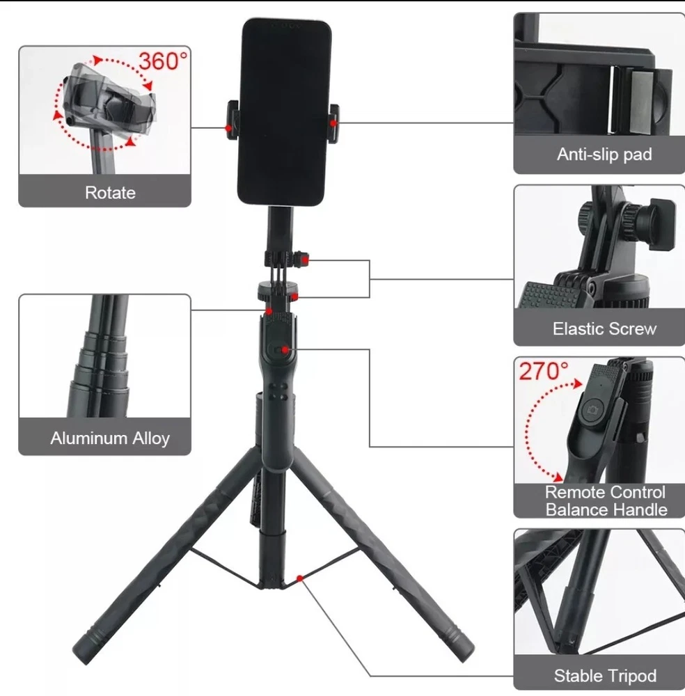 This 68" professional cell phone holder and camera tripod stand with remote selfie stick is a must-have for any photography enthusiast. It is compatible with various phone brands such as Apple and Samsung and comes with a universal 1/4" screw kit. The matte black aluminum material ensures stability and durability while the clip mounting type and 1 ft cable length provide convenience and flexibility in capturing shots. The holder also features a wireless charging standard and can be mounted on a desk for easy access. Its design and finish make it suitable for any occasion, whether it's for personal or professional use. This phone holder is the perfect accessory for capturing high-quality photos and videos without the hassle of holding your phone or camera.