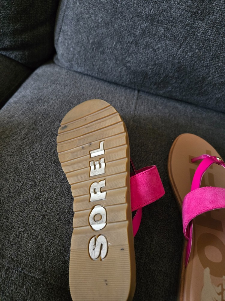 Sorel Ella Li leather and suede thong sandaks size 8 pink sude