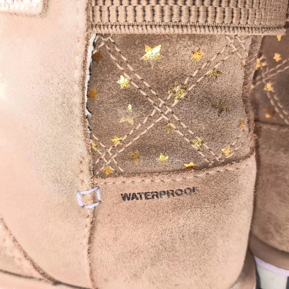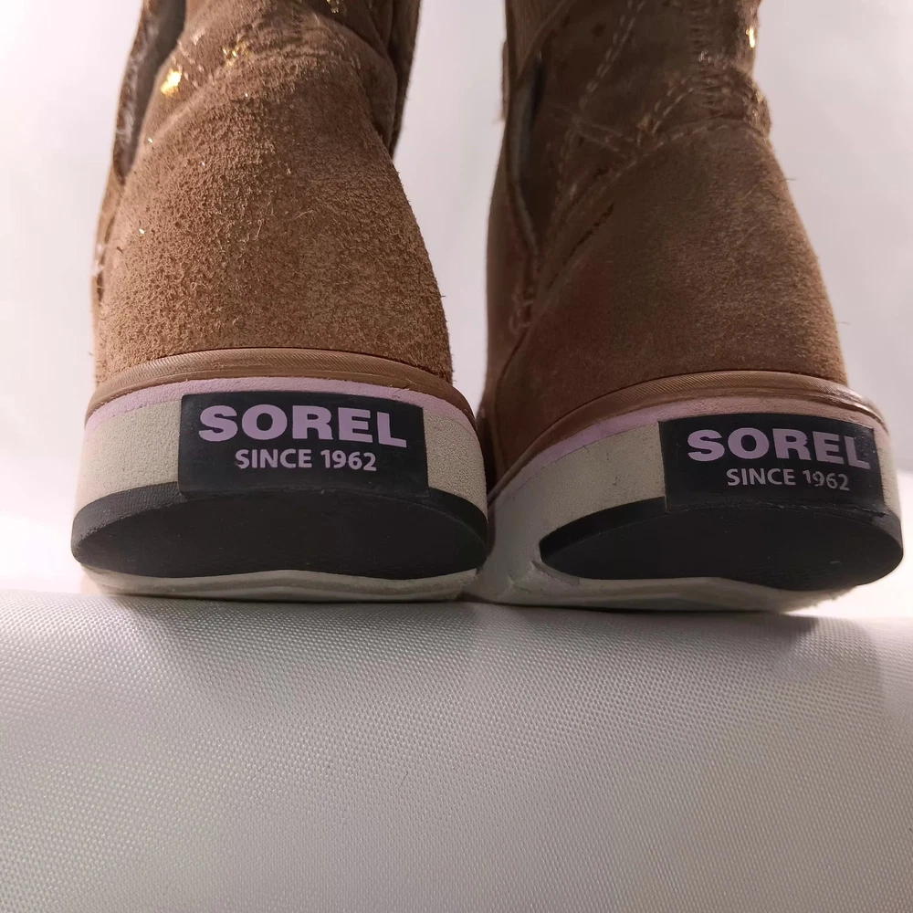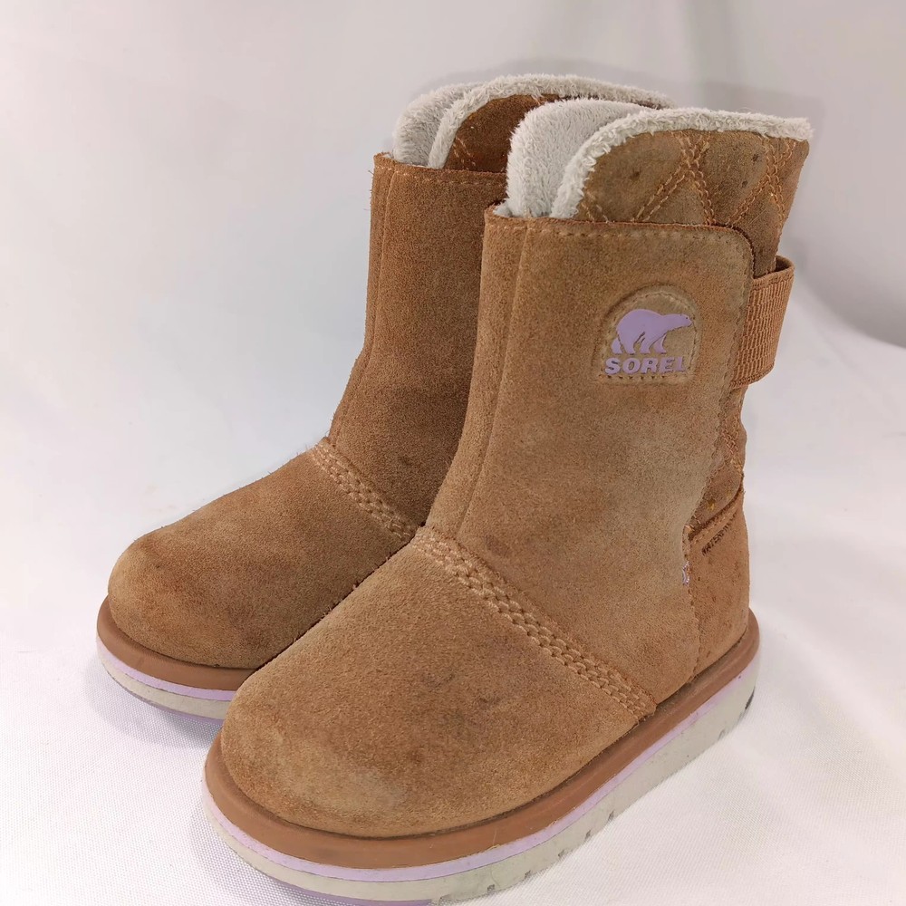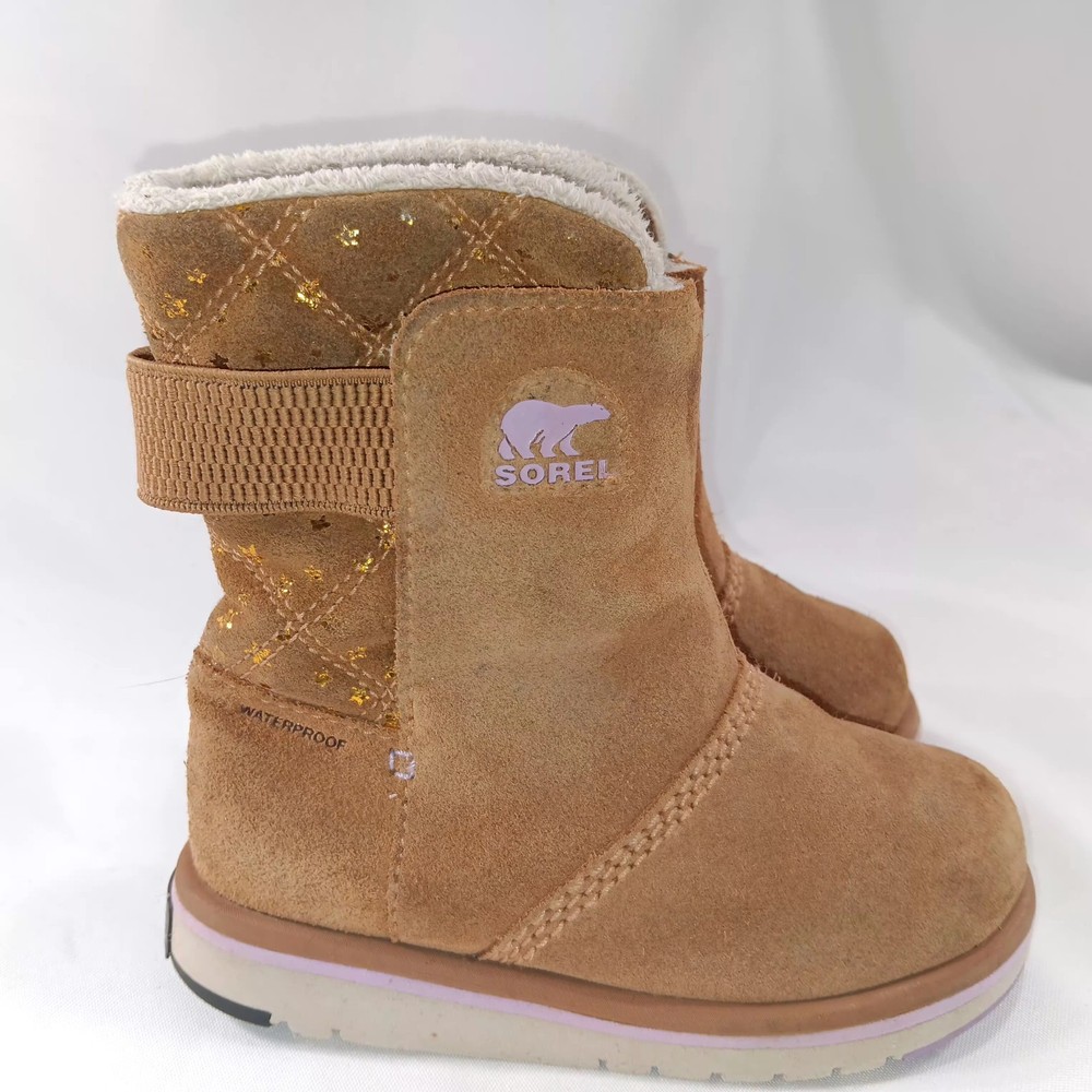 Sorel Rylee Boots Little Girls Size 9 Tan Suede Faux Fur Lined Waterproof Warm Cozy. Keep her feet warm and dry in these boots. There is some wear in the suede and some wear on the soles. The insoles have minor wear on. Please see the photos attached for details.