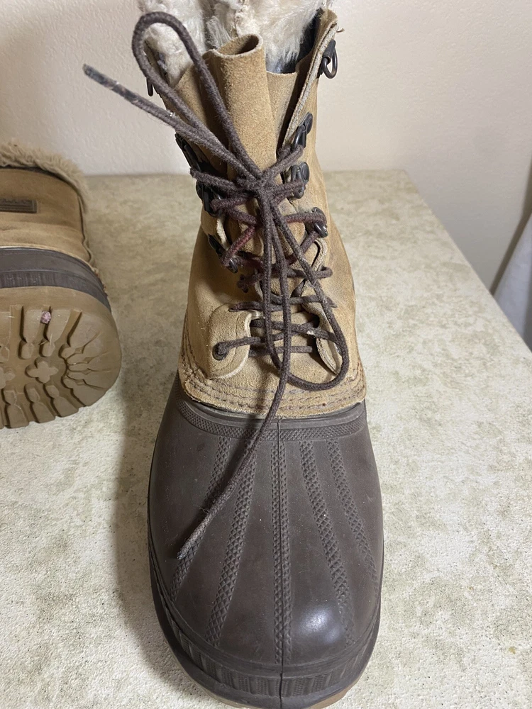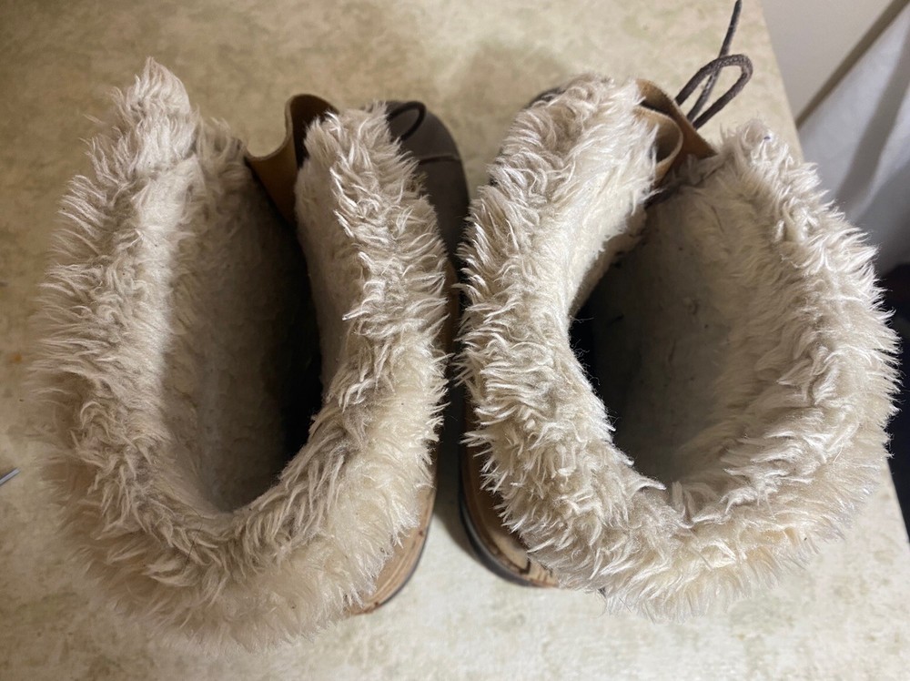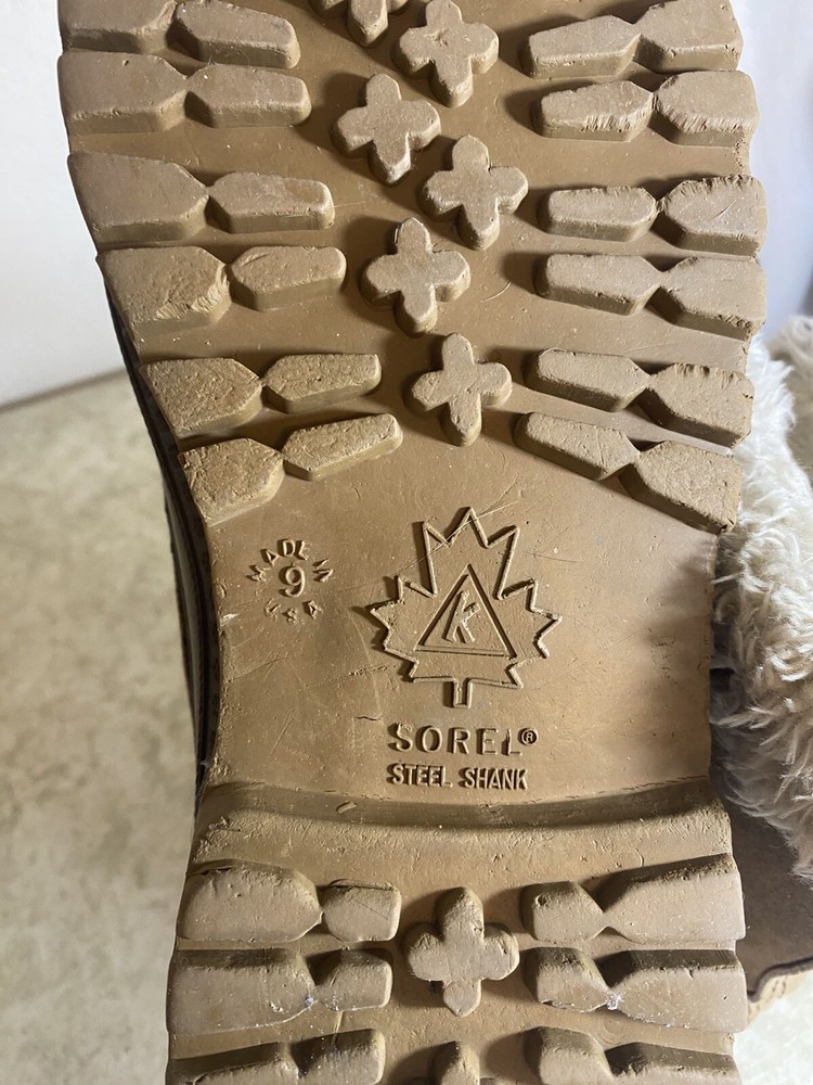 Men’s steel toe boots, size 9. Lining has lots of wear but the boots and soles are in great condition! Good quality boots, made in USA to last.