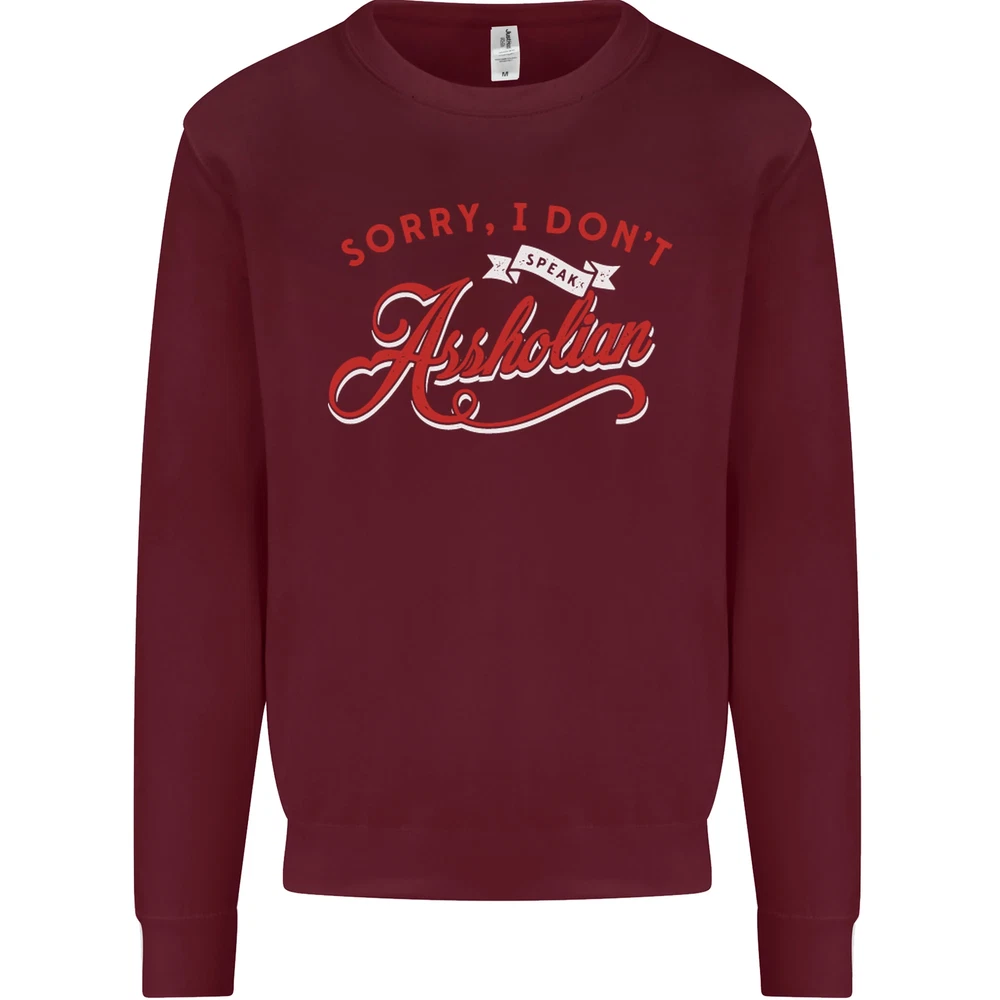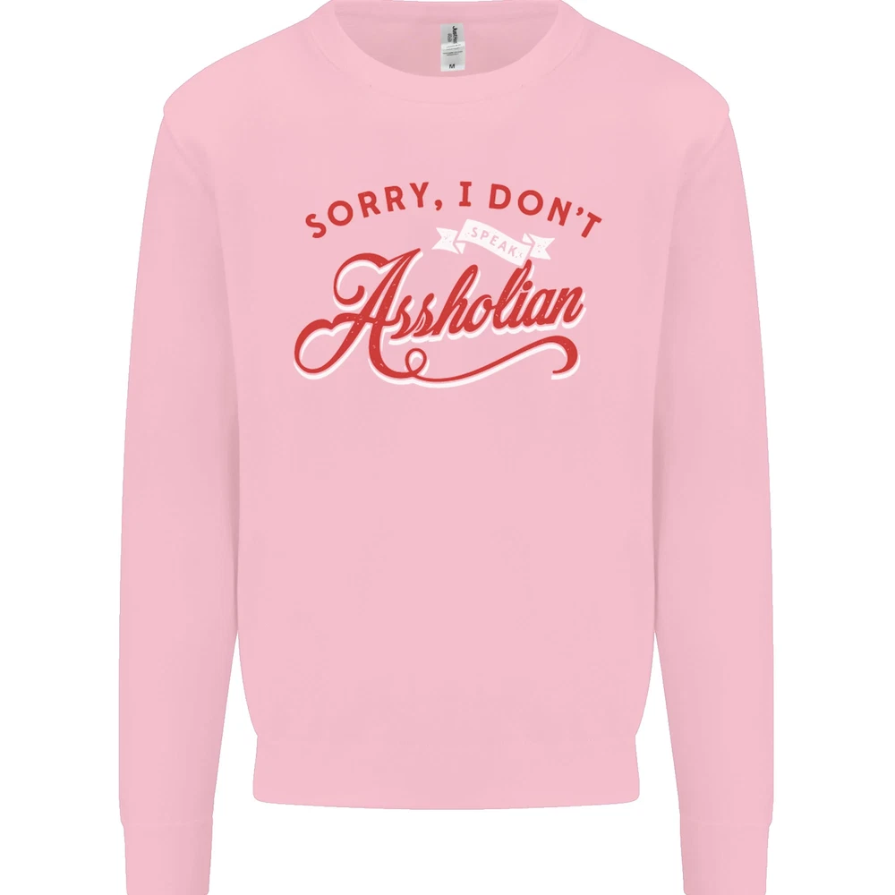 Sorry I Dont Speak Assholian Funny Slogan Mens Sweatshirt Jumper Sizes: S 36" M 40" L 44" XL 48" 2XL 52" 3XL 56" 4XL 60" 5XL 64" Professionally printed onto an adults AWDis Sweatshirt (Sweat) JH030N 280gsm Unisex Twin needle stitching detailing Ribbed cuff and hem Soft cotton faced fabric creates ideal printing surface Printed with eco-friendly inks that are safe to the skin and children Worldwide Responsible Accredited Production (WRAP) certified production Training shoe with low-to-the-ground feel. Upper: Welded-TPU support overlays in the heel, toe cap and quarter. Dual mesh provides closed mesh in the lower quarter and breathable mesh throughout. Texture screened toe cap for protection. Description & Size Chart Adults AWDis Sweatshirt (Sweat) JH030 280gsm Unisex Twin needle stitching detailing Ribbed cuff and hem Soft cotton faced fabric creates ideal printing surface Worldwide Responsible Accredited Production (WRAP) certified production Printed with eco-friendly ink, which are safe to the skin and children. Alternative Styles This design (where appropriate), and many more like it, are available on the following styles: Best Selling Collections On the Darkside Birthdays Pets \ Animals Gym & Fitness Father's Day Sport Funny Biker Special Occasions Martial Arts LGBT Christmas Shipping All orders are shipped within one working day. Due to circumstances out or our control, or busy times of the year, this could be extended to two working days. Returns Returns are accepted within 60 days of delivery providing that the item is returned in the original condition and all tags are intact (where applicable) and has not been worn. Please ensure that the item is returned clean and free of pet hair. To return an item please use eBay's return system, which can be located by finding your order in your account and selecting the return option. eBay integration by