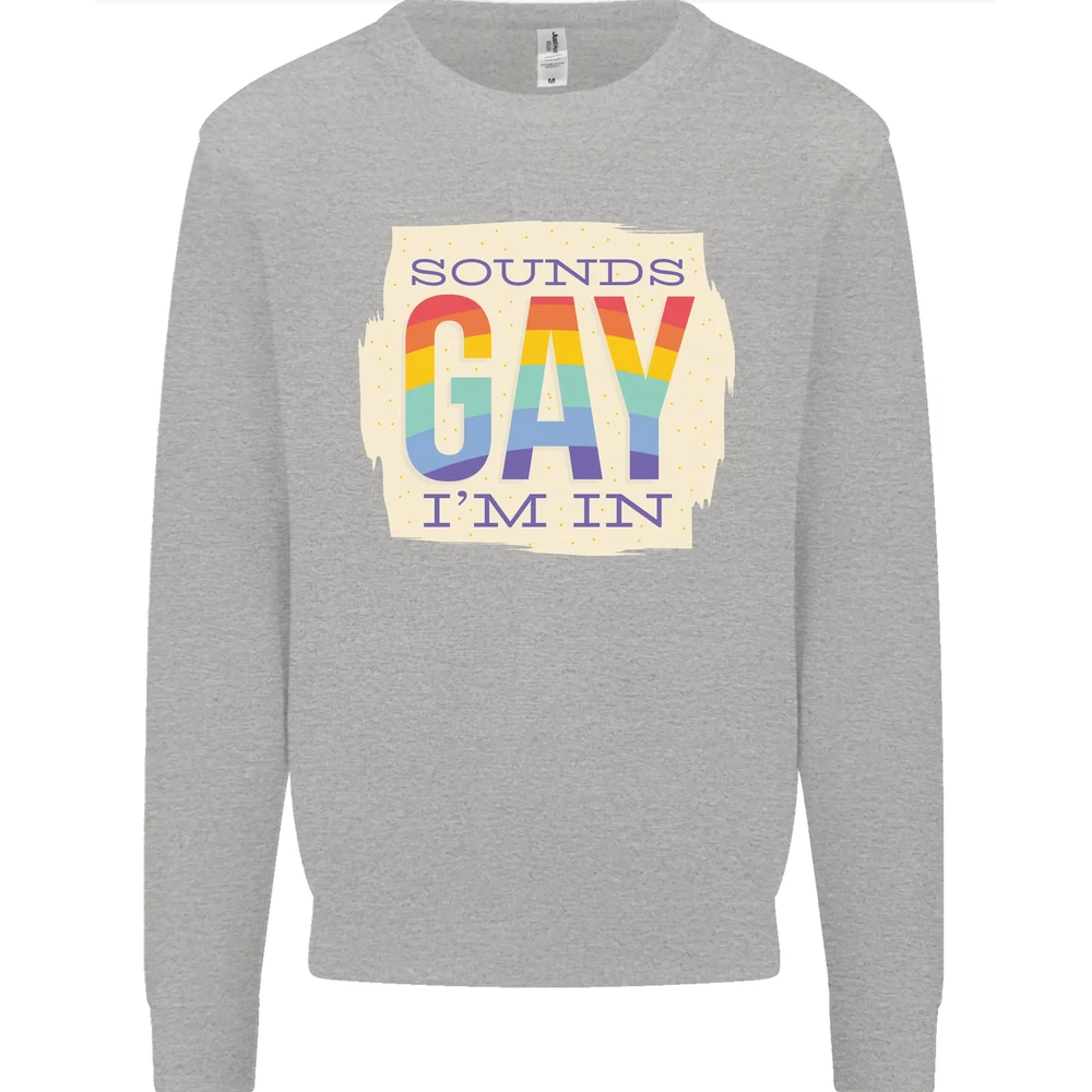 Sounds Gay Im In Funny LGBT Gay Pride Day Mens Sweatshirt Jumper None Training shoe with low-to-the-ground feel. Upper: Welded-TPU support overlays in the heel, toe cap and quarter. Dual mesh provides closed mesh in the lower quarter and breathable mesh throughout. Texture screened toe cap for protection. Description & Size Chart Adults AWDis Sweatshirt (Sweat) JH030 280gsm Unisex Twin needle stitching detailing Ribbed cuff and hem Soft cotton faced fabric creates ideal printing surface Worldwide Responsible Accredited Production (WRAP) certified production Printed with eco-friendly ink, which are safe to the skin and children. Alternative Styles This design (where appropriate), and many more like it, are available on the following styles: Best Selling Collections On the Darkside Birthdays Pets \ Animals Gym & Fitness Father's Day Sport Funny Biker Special Occasions Martial Arts LGBT Christmas Shipping All orders are shipped within one working day. Due to circumstances out or our control, or busy times of the year, this could be extended to two working days. Returns Returns are accepted within 60 days of delivery providing that the item is returned in the original condition and all tags are intact (where applicable) and has not been worn. Please ensure that the item is returned clean and free of pet hair. To return an item please use eBay's return system, which can be located by finding your order in your account and selecting the return option. eBay integration by