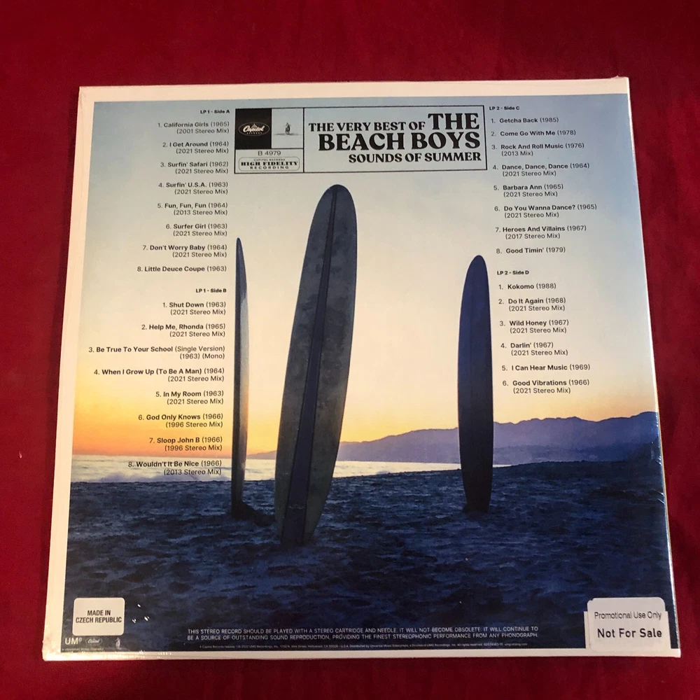Sounds of Summer: The Very Best of the Beach Boys [60th Anniversary Edition Remastered 2LP]*NEW*SEALED*!! Sleeve Grading is rated VG+. Has dent on top left corner. Please see images for exact product condition. The Beach Boys "Sounds Of Summer" (Remastered ) 2LP Originally released in 2003 with 30 tracks, UMe has updated and reissued the classic Sounds Of Summer compilation, featuring 16 new stereo mixes including 1 first-time stereo mix. Newly remastered and available on standard black 2LP with updated photos and liner notes. Track Listings 1 The Very Best of the Beach Boys : California Girls [2001 Stereo Mix] 2 The Very Best of the Beach Boys : I Get Around 3 The Very Best of the Beach Boys : Surfin' Safari 4 The Very Best of the Beach Boys : Surfin' U.S.A 5 The Very Best of the Beach Boys : Fun Fun Fun [2013 Stereo Mix] 6 The Very Best of the Beach Boys : Surfer Girl 7 The Very Best of the Beach Boys : Don't Worry Baby 8 The Very Best of the Beach Boys : Little Deuce Coupe 9 The Very Best of the Beach Boys : Shut Down 10 The Very Best of the Beach Boys : Help Me Rhonda 11 The Very Best of the Beach Boys : Be True to Your School [Mono] 12 The Very Best of the Beach Boys : When I Grow Up (To Be a Man) 13 The Very Best of the Beach Boys : In My Room 14 The Very Best of the Beach Boys : God Only Knows [1996 Stereo Mix] 15 The Very Best of the Beach Boys : Sloop John B [1996 Stereo Mix] 16 The Very Best of the Beach Boys : Wouldn't It Be Nice [2013 Stereo Mix] 17 The Very Best of the Beach Boys : Getcha Back 18 The Very Best of the Beach Boys : Come Go with Me 19 The Very Best of the Beach Boys : Rock and Roll Music [2013 Stereo Mix] 20 The Very Best of the Beach Boys : Dance Dance Dance 21 The Very Best of the Beach Boys : Barbara Ann 22 The Very Best of the Beach Boys : Do You Wanna Dance? 23 The Very Best of the Beach Boys : Heroes and Villains 24 The Very Best of the Beach Boys : Good Timin' 25 The Very Best of the Beach Boys : Kokomo 26 The Very Best of the Beach Boys : Do It Again 27 The Very Best of the Beach Boys : Wild Honey 28 The Very Best of the Beach Boys : Darlin' 29 The Very Best of the Beach Boys : I Can Hear Music 30 The Very Best of the Beach Boys : Good Vibrations Top Questions Reviews