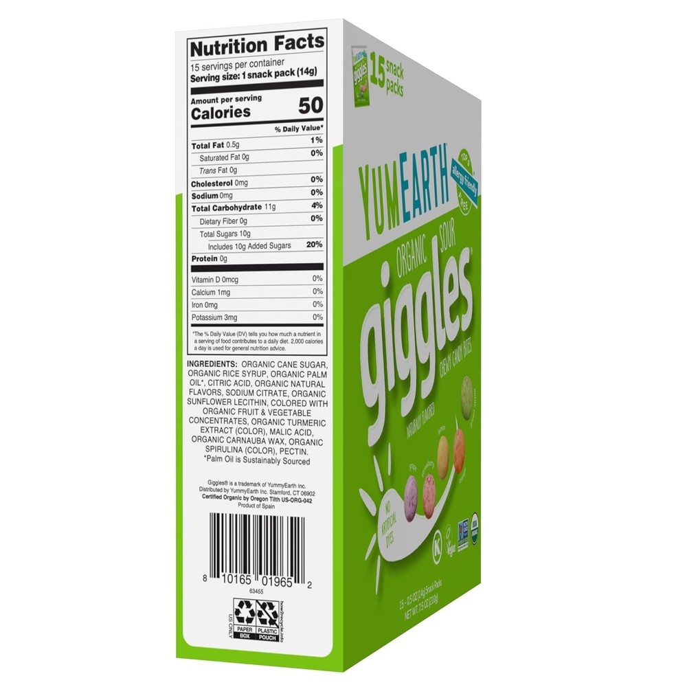 Sour Giggles Organic Chewy Candy - Treats, 15×0.5oz Packs, Gluten Free ‹ › ‹ › ‹ › ‹ › ‹ › ‹ › ‹ › ‹ › ‹ › ‹ › Sour Giggles Organic Chewy Candy - Treats, 15×0.5oz Packs - Gluten Free Features: Individually bagged fruity candies: Perfect for your pantry, to snack on, or throw in a lunchbox. Packaged in 15 individual packets for convenience. Assorted sour fruit flavors: Includes Lemon, Strawberry, Orange, Grape, and Green Apple. No artificial dyes or high fructose corn syrup. Organic candy made from organic ingredients. Non-GMO Certified, Gluten Free, and . Top 9 allergen-free: No peanuts, gluten, tree nuts, milk, eggs, fish, shellfish, soy, or sesame. Benefits: Perfect for a variety of dietary restrictions, making it a suitable choice for everyone. Delicious flavors that satisfy your sweet cravings without compromising on health. Great for everyday snacking, festive celebrations, or special occasions. Convenient and fun to enjoy on-the-go with individual packaging. Why choose Sour Giggles Organic Chewy Candy? Discover the delightful world of Sour Giggles, where fun meets healthy indulgence! Each chewy bite offers a mouth-puckering explosion of fruity flavor, crafted from organic and ingredients for a guilt-free experience. Whether you're looking to satisfy your sweet tooth or provide a safe and tasty treat for friends and family, these candies promise a joyous addition to any celebration. Your delightful and responsible choice in candy awaits! Indulge in the sweet and sour world of Sour Giggles today! Shipping Free & Fast Shipping - We offer free shipping to most of the USA with a normal delivery time of 3-7 days. However, due to the current situation, additional delivery time (up to 3 weeks) may be required for some items. Alternative Carriers - We may use alternative carriers (e.g. USPS, FedEx, UPS, etc.) to ensure your package arrives safely and on time. Due to the use of multiple carriers, we are unable to provide a tracking number automatically. Handling Time - Orders are processed and shipped within 1-2 business days of receiving cleared payment. Shipping Restrictions - Shipping to Alaska, Hawaii, Puerto Rico, Guam, and other US territories may incur shipping charges or delivery restrictions. Please contact us before ordering, or your order can be refunded/cancelled. State Restrictions - There may be restrictions based on your state of purchase. For example, certain items may not be shipped to California due to state regulations. Contact for Tracking Updates - If you require tracking updates or have any concerns about the delivery of your order, please feel free to contact us, and we will be happy to assist you. Return 30-Day Hassle-Free Returns - We want you to be completely satisfied with your purchase. If you are not, you can return the item within 30 days of receiving it for a full refund or exchange. Easy Return Process - To start a return, simply contact us and we will provide you with a prepaid return shipping label and detailed instructions. Restocking Fee - There are no restocking fees for returns. However, the buyer is responsible for return shipping costs if the return is not due to a seller's error. Refund Processing Time - Refunds will be processed within 5 business days of receiving the returned item in its condition. Payment We accept all major credit cards, PayPal, and Apple Pay for your convenience. Your payment information is secure and encrypted to ensure a safe and seamless transaction. Please complete your payment within 3 days of purchase to avoid any delays in shipping. Feedback Your feedback is extremely important to us. We strive to provide the best products and customer service possible. If you are satisfied with your purchase, please take a moment to leave us a positive review. If you have any concerns or issues with your order, please contact us before leaving negative feedback. We are committed to resolving any problems and ensuring your satisfaction. Contact Us If you have any questions or concerns, please feel free to out to our customer support team. You can contact us through the eBay messaging system. We are available Monday to Friday, 9:00 am to 5:00 pm EST, and we will do our best to respond to your inquiry within 24 hours. Buy it now and enjoy a pleasant shopping experience! Expiration Date: Organic Chewy Candy Calories per 100 g/mL: Organic Chewy Candy Course: Snack Number in Pack: 15 Style: Organic Unit Quantity: 0.5 ounce Food Specifications: Gluten Free,Organic,Non-GMO,Allergy Friendly Allergens: Dairy Free Flavor: Sour Giggles,Lemon,Strawberry,Orange,Grape,Green Apple Product: Gummy, Soft Sweet & Marshmallow Type: Candy Shape: Round Packaging: Box Number of Servings: 15 Serving Size: 7.5 ounces Occasion: Birthday Item Weight: 7.5 ounces