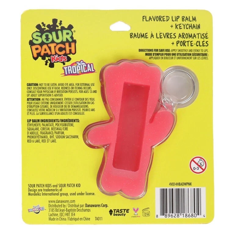 A keychain that looks like a giant Sour Patch kid, with a lip balm in the back of the keychain. Attach to your backpack for on the go. Sour Patch Pink Flavor: Experience the deliciously tangy and sweet flavor of Sour Patch Kids candy in a lip balm, adding a playful twist to your lip care routine. Compact Keychain Design: The lip balm comes with a functional keychain, making it easy to carry on your keys, purse, or backpack, ensuring you have sweet and sour hydration on the go. Collectible Appeal: With its unique design and flavor, the Sour Patch Pink Lip Balm becomes a fun and collectible item for enthusiasts of sour candies and beauty novelties. Ideal for All Ages: Whether you're a candy connoisseur or just enjoy a touch of sweetness, this lip balm is suitable for users of all ages. Great Gift for Candy Lovers: Surprise friends or family who love sweet treats with this distinctive and playful lip balm keychain, ideal for birthdays or special occasions. Thank you for your order!