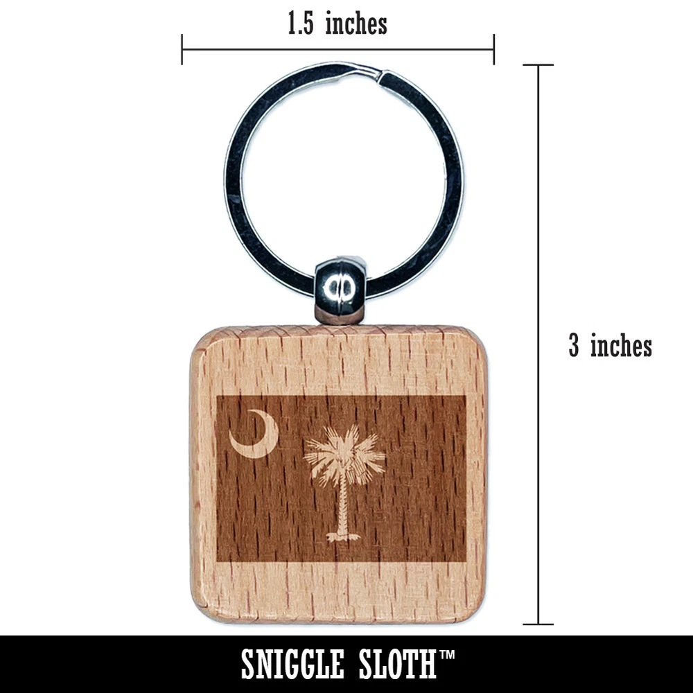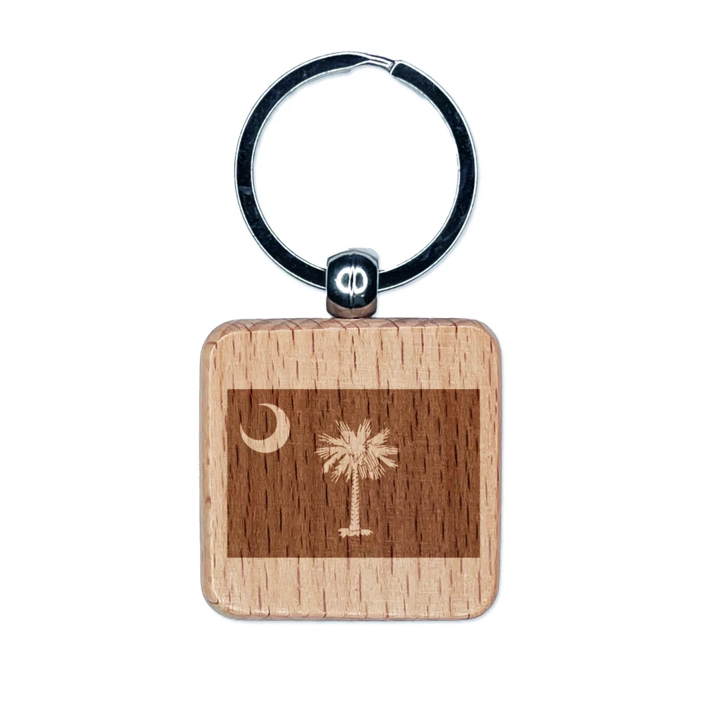 South Carolina State Flag Engraved Wood Square Keychain Tag Charm