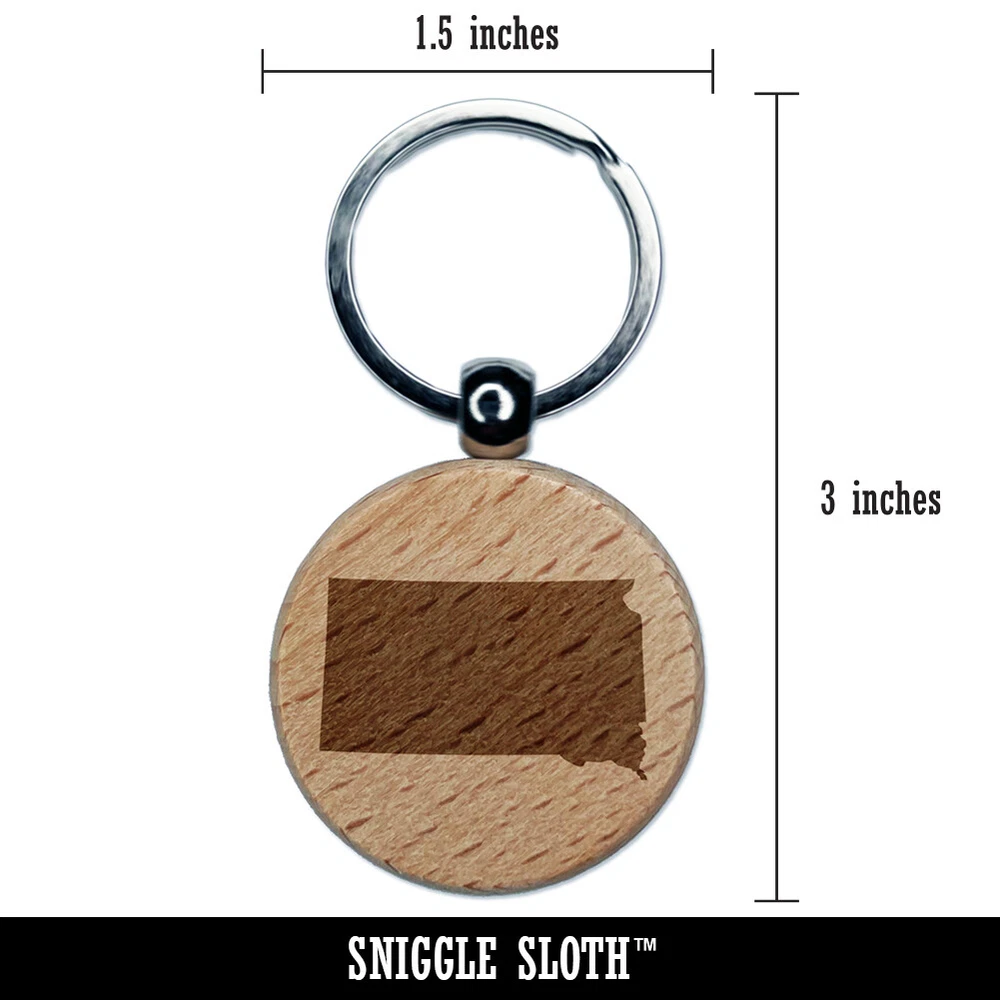 South Dakota State Silhouette Engraved Wood Round Keychain Tag Charm
