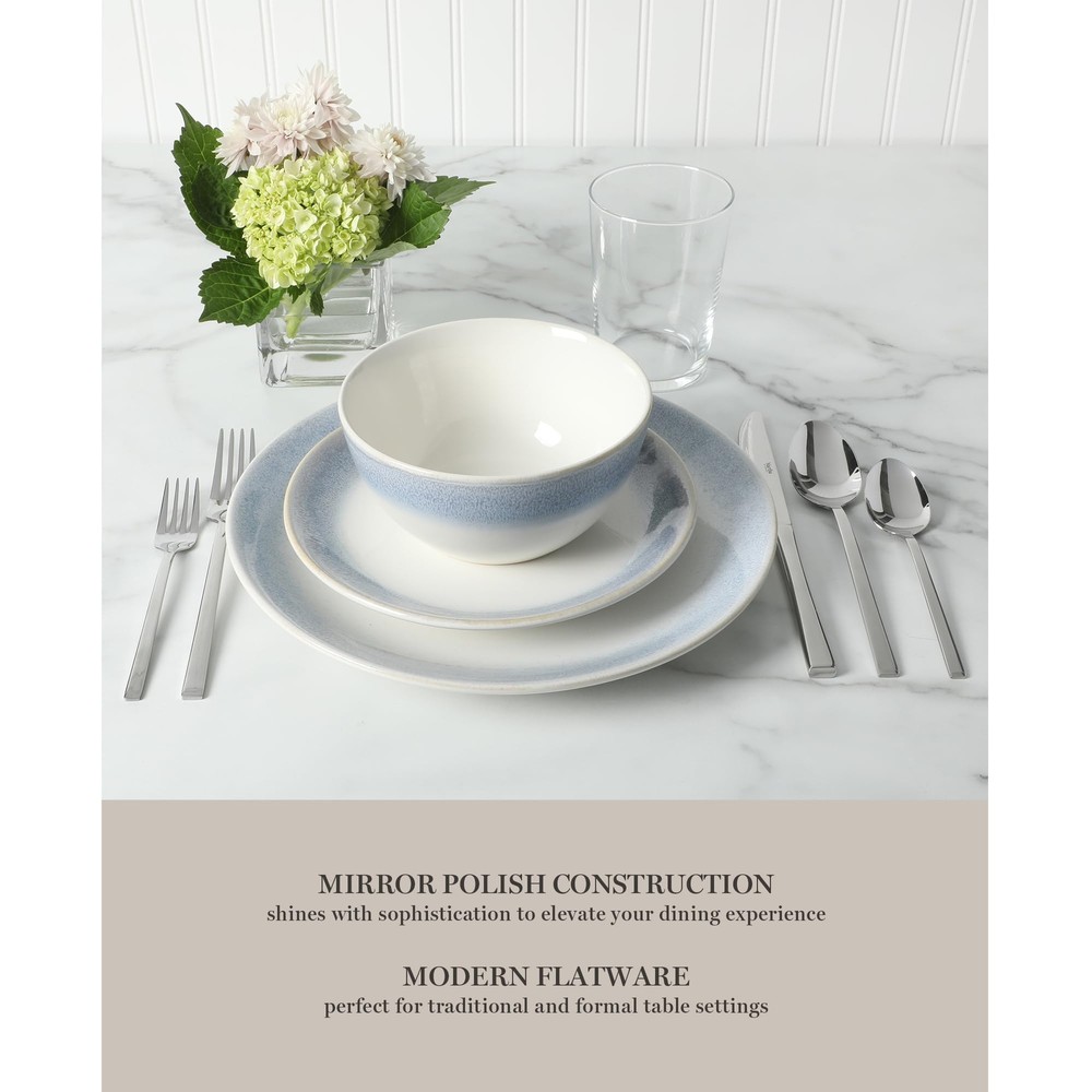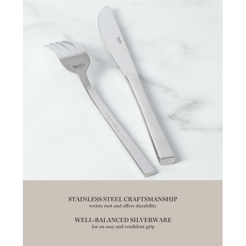 The joy of entertaining runs (and lasts) all year. Transcending seasons and occasions, impressive entertaining is a year-round task for both avid and aspiring hosts. From the carefully-prepared dishes to beautifully-presented tablescapes, no detail is too small to leave a lingering smile and a lasting impression. The Southland 20-piece Stainless Steel Flatware Set from is a quiet addition to any place setting. Crafted from stainless steel, each silverware lends a modern style to any place setting. This flatware set offers full service for four to host a weekend brunch or a casual dinner with a small group of friends. Each utensil offers an intuitive grip to confidently cut or scoop any dish with finesse and sophistication. Dishwasher safe. Embrace thoughtfully designed home essentials from America’s most trusted lifestyle expert, . Step into her exquisite and iconic world filled with a curation of high-quality products to prep, cook, bake, serve, and enjoy. All crafted to elevate everyday homemaking and seasonal entertaining, these kitchen and tabletop pieces blend style and performance, inspiring avid hosts and home cooks to set stylish tables, serve up delicious meals, and create spectacular memories. A COMPLETE SET INCLUDES: Four dinner spoons, four dinner forks, four dinner knives, four salad forks and four teaspoons STAINLESS STEEL SILVERWARE: Rust- and corrosion-resistant stainless steel craftsmanship offers durability to line your place settings with elegance every day MIRROR POLISH CONSTRUCTION: Lustrous finish gleams with sophistication to elevate your dining experience, whether in casual dinners or dressier occasions MODERN APPEAL: Meticulously sleek and modern flatware are pleasing to the eye adn comfortable to the touch ELEGANCE AT YOUR FINGERTIPS: Smooth and weighted handles offer an intuitive grip. Dine in style and confidence as you use these utensils from the outside of each place setting, working inwards for each course. A GIFT OF ENTERTAINING: A lovely idea to give as a birthday, anniversary, or housewarming gift for someone who has passion to host and entertain CARE INSTRUCTIONS: Dishwasher safe. Use dishwashing detergents without citrus-based ingredients to maintain product quality and luster.
