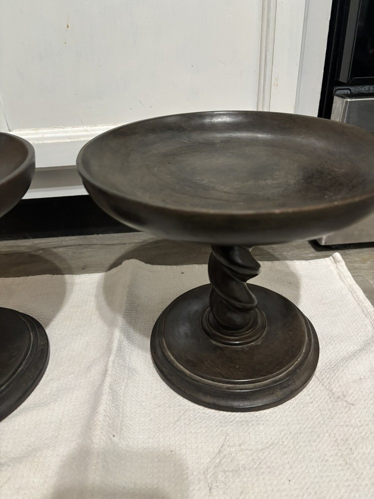 These sturdy pedestals are total game-changers! I've used them for everything from holiday displays to dessert tables. They're surprisingly heavy and solid, with just a couple tiny spots that could use a quick touch-up. So versatile and beautiful!