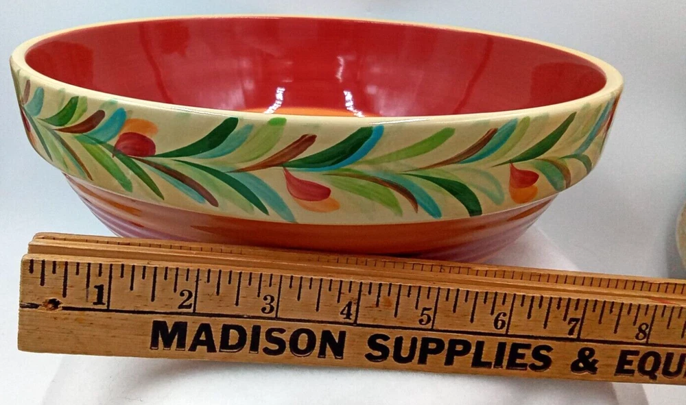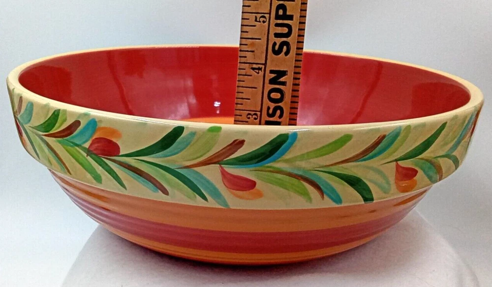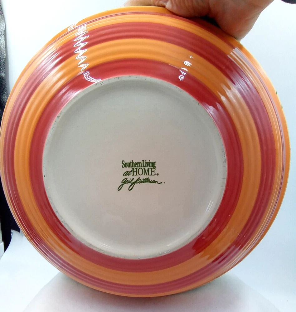 Product Line: Gail Pittman Type: Serving Bowl Material: Stoneware Time Period Manufactured: 2000-2009 Pattern: Siena Brand: Southern Living at Home Finish: Glossy Era: 21st Century (2000-now) Occasion: All Occasions Theme: Food Production Technique: Pottery Color: Yellow Production Style: Art Pottery Handmade: No Seller Notes: “Very Handy Bowl! No Chips or Cracks! Great Shape! Pre-owned!” Country/Region of Manufacture: Unknown Shape: Round Original/Licensed Reproduction: Original Department: Adult Features: Decorative, Stackable Style: Contemporary Vintage: Yes Antique: No