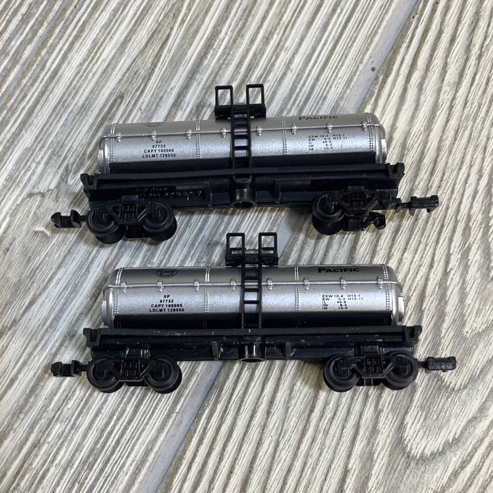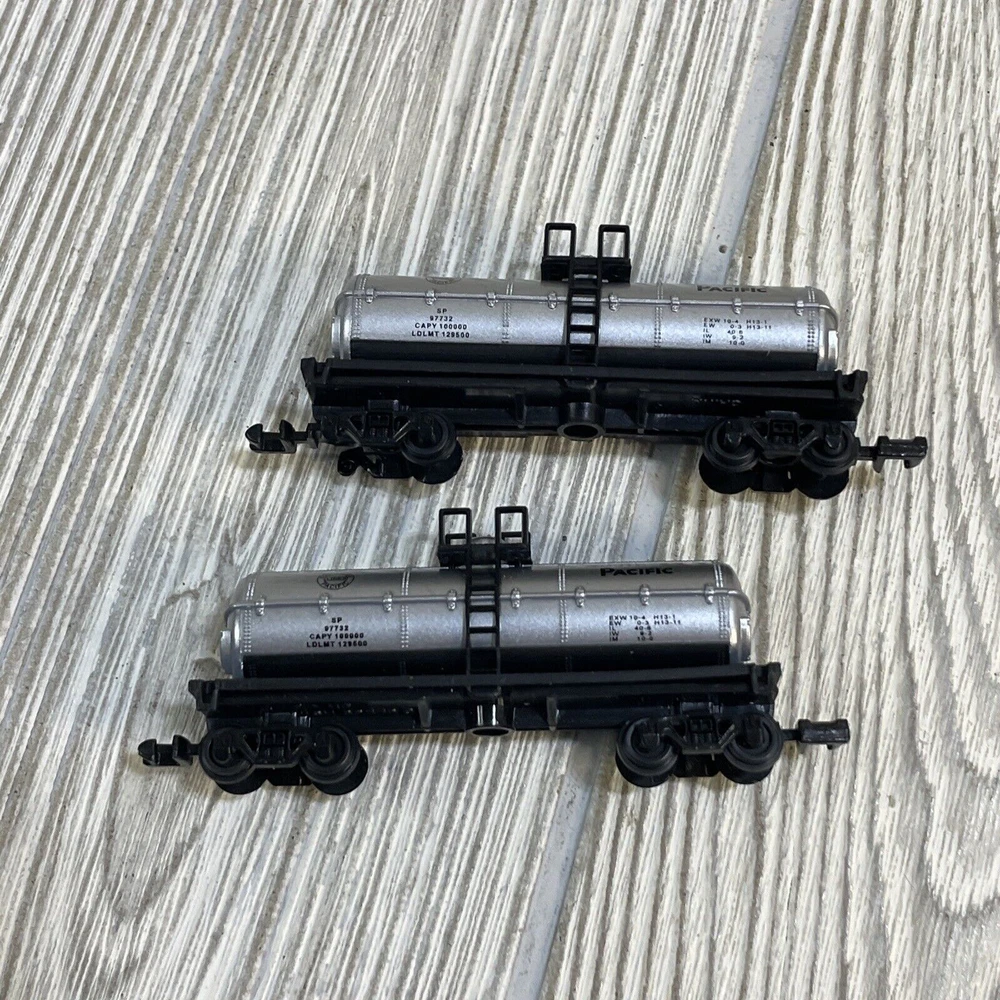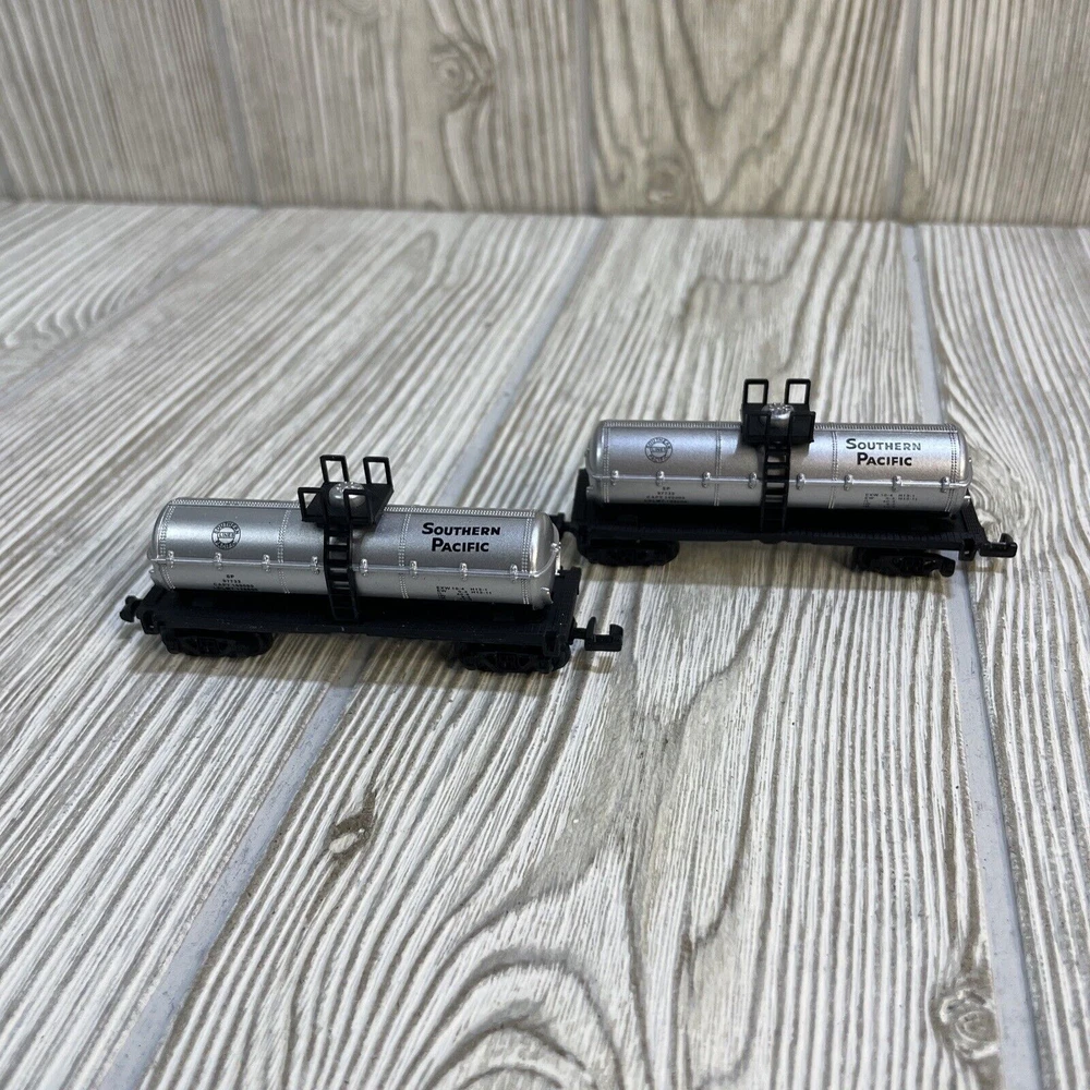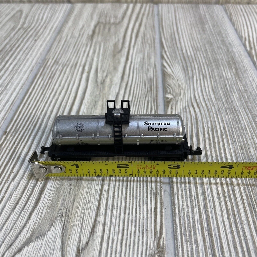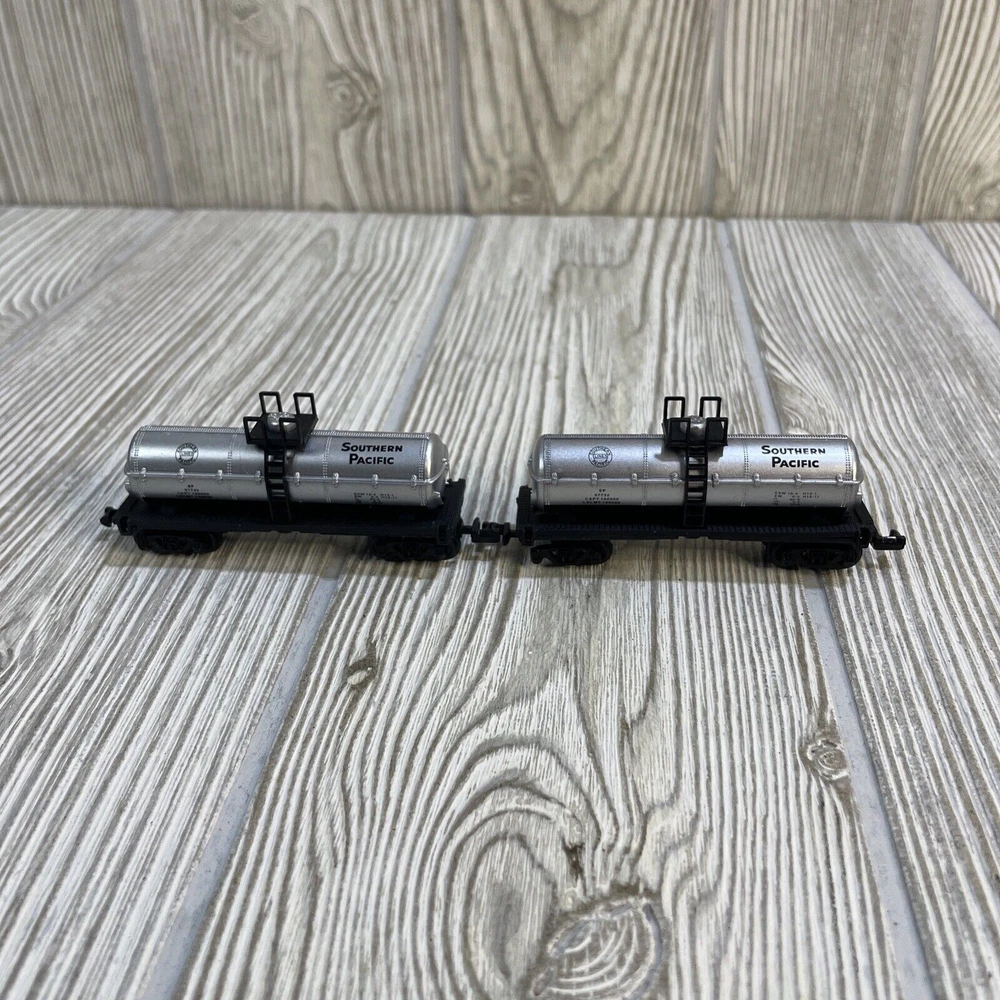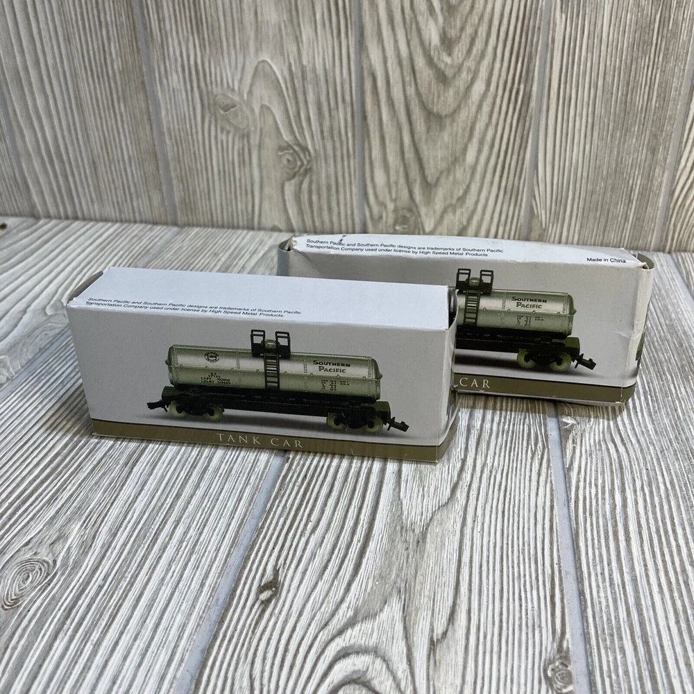 Get your hands on this set of 2 Southern Pacific Tank Car model train tankers, must-have collectible items for train enthusiasts! The attention to detail is impeccable, with a mini metallic finish that truly brings this piece to life. 3.5” long each. Good condition, minor wear to the original boxes. See photos.