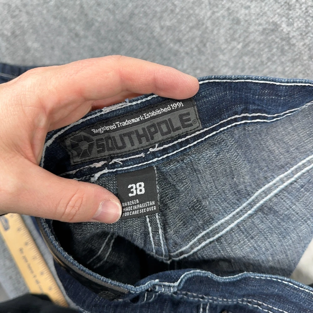Southpole Baggy Jeans Mens 38x34 Faded Vintage Y2K Embroidered Contrast Stitch In good condition. Please see photos for measurements.