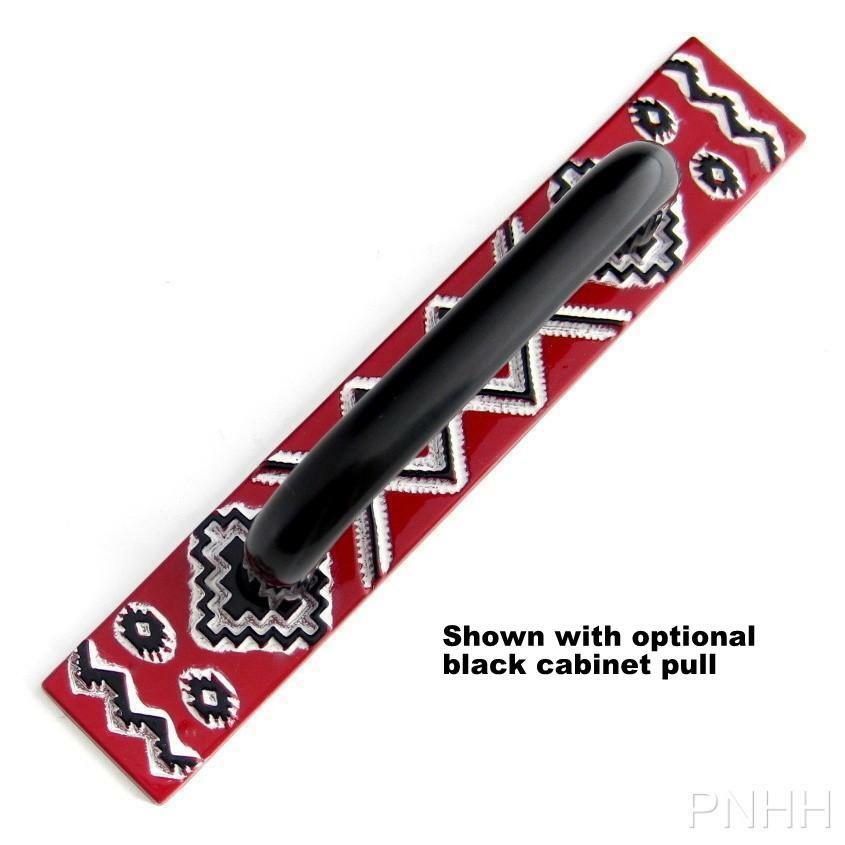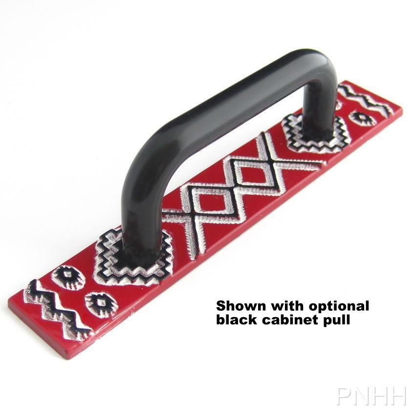 Hickory P376-NR Pull Backplate, NR List Price: $6.49 Our Price: $3.99 New Hickory-Belwith P376-NR cabinet pull Backplate with red, black and white handpainted design Installs with any cabinet pull having 3-inch hole-to-hole spacing Dimensions: 5.63 inch length x 1 inch width x 0.13 inch projection Painted & Lacquered finish provides long-lasting beauty and durability New decorative hardware makes it easy to renovate your kitchen cabinets, bathroom vanity or old furniture without investing a lot of time or money Brand: Hickory Hardware Model: P376-NR Manufacturer: Belwith-Keeler Finish: Painted Color: Red, Black & White Length: 5-5/8 inch Width: 1 inch Projection: 1/8 inch Hole Spacing: 3 inches Collection: Southwest Style: Traditional Material: Zinc Type: Pull Backplate Shape: Rectangle The P376-NR handpainted metal Backplate by Belwith-Keeler Brass features raised and etched surfaces, detailed painting, and strong clear protective coating. The black-painted geometric designs on the backplate represent raised surface areas, while the white paint represents etched surface areas. The installation holes are 3 inches apart. This item was manufacturered in the 1990's and is now discontinued - we uncovered this limited supply still in original boxes and sealed retail packages. You can use these with your own cabinet handles or knobs, or check our store for coordinating items. Store Policies Fast Shipping Shipping cost and estimated delivery time are shown in the Shipping and Payments tab. If you are ordering a combination of different items from our store, please contact us for a combined shipping quote. Once your order ships, we email you a shipment confirmation and tracking number. Returns We offer a 30-day return policy . Items must be returned in the same condition as received, including all items in the original package. Once used, items may not be returned. Please refer to the eBay return policy for details. Customer Service We are happy to answer any questions you have about our products. Just click the Contact Seller link in this listing. About Us PNW Hardware offers a unique selection of brand name knobs, pulls, handles, hooks and other decorative home hardware items, most at savings of 30-75% off list price! All products are stocked in our local warehouse and ready to ship. We pay meticulous attention to the accuracy of our product descriptions and photos to ensure your satisfaction. Our strong customer orientation is reflected in feedback from our customers.