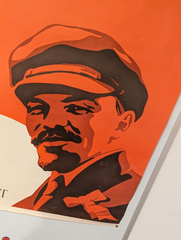 Vintage Soviet Propaganda Poster - Lenin with Hammer and Sickle - Large Size