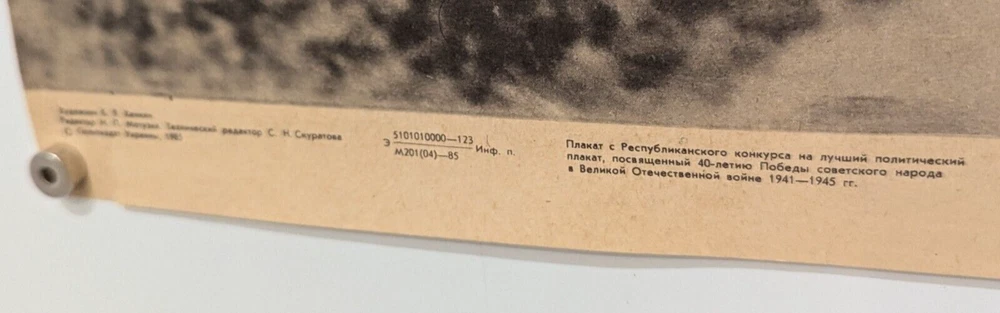 Welcome to Antique Poster Shop The poster is one of the most lively and, at the same time, the most complex areas in graphic design, in art. The Soviet poster is a truly unique phenomenon, and in different years the authors of famous posters were outstanding Soviet artists, leading people of their time. The best artists of their time worked on propaganda posters, famous poets wrote slogans - thus, unique graphic schools were formed. Nowhere in the world did they teach the poster purposefully and systematically, as it was in the USSR. Rare Soviet posters today have to be searched for in different countries of the world. It's a paradox, but what was created in only a few copies and is known only to collectors is sometimes easier to find than what was produced in thousands of copies. Of the millions of campaign posters that have adorned the streets, classrooms, classrooms and hospital corridors for many decades, only a few have survived. Posters of the Soviet era are not only original works of graphic art, antiques and antique graphics, original retro gifts and interior items, but also truly historical documents. SIZE – 40 / 28 INCHES OR 100 / 70 CENTIMETERS Year of production 1985 SLOGAN : We brought Victory Day closer as best we could! THE PAINTER IS Feklyaev Vladimir Nikolaevich 1947 Soviet graphic artist, illustrator, poster artist. Member of the Union of Artists of the USSR. Vladimir Nikolaevich Feklyaev was born in Melitopol. Studied at the Moscow Art and Industrial School named after M. I. Kalinin (1964–1968), at the Moscow Polygraphic Institute (1968–1971), at the Moscow State Art Institute named after V. I. Surikov (1972–1978), with N. A. Ponomarev, O. M. Savostyuk, I. T. Ovasapova. Since 1978 he has worked in the field of political and social posters. Collaborated with the publishing houses "Plakat", "Young Guard" and others. Participated in republican, all-Union exhibitions and poster competitions. Author of posters: "Serving the people" (1970), "Give Siberia!" (1978), "Peace to planet earth!" (1979), "Happy New Year 1981!" (1980), “I am the son of the country of the Soviets!” (1980), “Soviet-Mongolian friendship is indestructible!”, “For exemplary social order!”, “Happy birthday, pioneers, red-tie people!”, “More excellent goods to the people!”, “Scientist for the glory of the fatherland, create!”, "Glory to the reliable guardians of the world!" (all -1981), “Party plans are my plans!” (1981, 1983), “Samotlor, Urengoy, Neryungri, BAM, Surgut, Ulkan, Tomsk Petrochemical Plant”, “Let’s be diligent and economical - the wealth of the motherland will become huge!”, “I took the line - do not stand still - this is the law of working honor !”, “Glory to the Soviet armed forces!”, “Let our Motherland become stronger and more beautiful!”, “For our Motherland, for peace on the planet, for everything we are with you, comrade, in the answer!” (all -1982), “Happy New Year 1983!”, “To work and live for the people is no higher than this dream. I was accepted into the family of grain growers, stand next to us and you!”, “For the first time in the world”, “Glory to Soviet pilots!” (all -1983), "April 12 - Cosmonautics Day" (1984), "The borders of the Motherland are inviolable" (1984), "February 23 - Day of the Soviet army and navy" (1985), "Glory to the Soviet missilemen!", "We will carry out your decisions, congress!" Designed and illustrated books for publishing houses: Children's Literature, Bustard, Terra, Military Publishing, and others, paints pictures, works as an easel graphic artist. In the 1980s, he completed sketches for printed materials for the World Festivals of Youth and Students in Moscow and Pyongyang; design - for the pioneer camp "Orlyonok" in Tuapse, the propaganda train "Komsomolskaya Pravda" and the propaganda boat "Korchaginets". He made business trips to the Russian House of Science and Culture in Berlin (1989-1992), (1993-1995), (1996-1997), where he performed advertising posters. The posters of V. N. Feklyaev are kept in the State Historical Museum (GIM), the State Central Museum of Modern History of Russia, the Russian State Library (Moscow), the State Museum of the History of Cosmonautics named after K. E. Tsiolkovsky, the Central Museum of the Ministry of Internal Affairs, the State Museum of the History of St. Petersburg (GMI St. Petersburg), Astrakhan State United Historical and Architectural Museum-Reserve, Berezniki Museum of History and Art. I. F. Konovalova (BIHM), Volsk Museum of Local Lore, Voronezh Regional Museum of Local Lore, City Museum of Local Lore (Miass), Local Lore Museum of Syzran, KGIAMZ im. E. D. Felitsyna, Morshansky Museum of History and Art, Central Museum of Taurida (WTC), Khabarovsk Regional Museum named after N. I. Grodekov, Museum of German History (Berlin), Poster Museum in Osnabrück, Gottbus poster gallery and other private collections Russia, Germany, Greece, Italy, Cyprus, Poland. Attention important information ////// A ttention important information //////////////////////////////////////////////////////////////////////////////////////////////////////////////////////////////////////////// Visit my store : https://www.ebay.com/str/originalfilm312/Poster/_i.html?store_cat=43231993011 In my store, all posters are very conveniently arranged by category. I combining shipping ( After selecting all posters. Write to me to send you an invoice including combined shipping . ) Will be shipped rolled in professional packaging and tracked delivery Some posters are undergoing professional restoration. But not all. If this is important for you, ask a question, this poster has been restored or not. Thank you //////////////////////////////////////////////////////////////////////////////////////////////////////////////////////////////////////////// Shipping Policy Item will be shipped immediately on the same or next business day of receiving the payment Shipping WorldWide thr