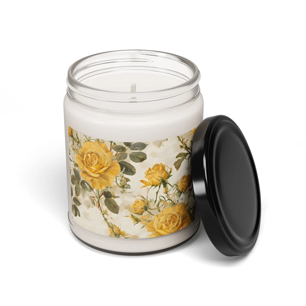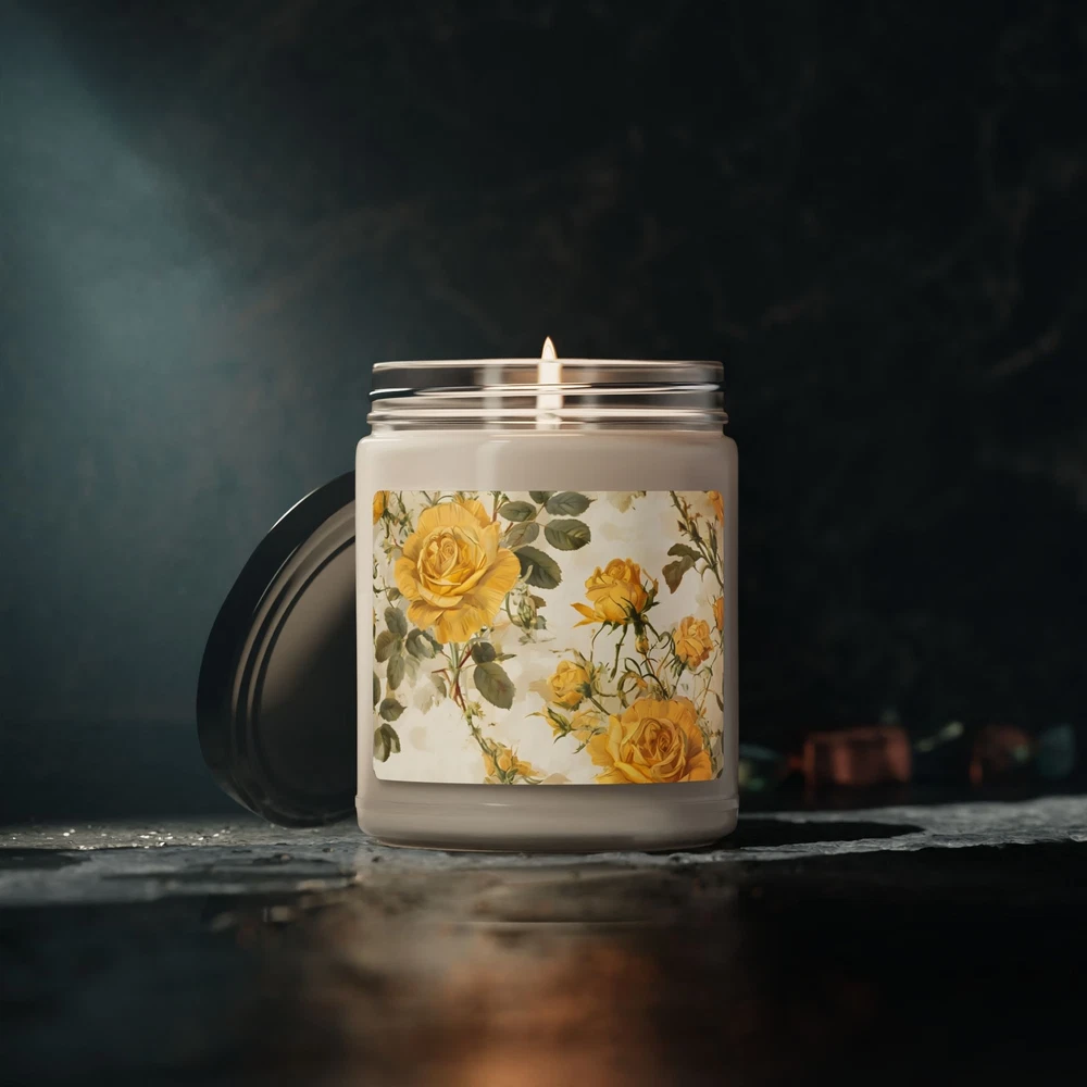 Yellow floral flowers scented soy candle 9 oz that gives off a cozy and calming vibe, perfect for creating a relaxing atmosphere in any room. Ideal for individuals who enjoy floral scents and looking to unwind after a long day. Relevant for holidays, special occasions, and everyday use. Product features - Eco-friendly and non-toxic soy candle - Reusable glass vessel for decor - Variety of aromatic scents to choose from - 50-60 hours of burning time - Compliant with safety standards Care instructions - Keep burning candle within sight. Keep away from children and pets. Never burn the candle near flammable items.