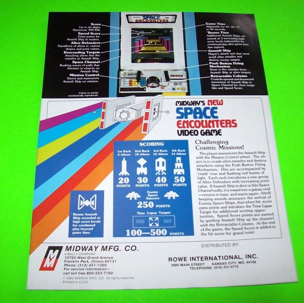 Original promo flyer. Has paper clip dings, light creases, ripples/waves, and corner wear. See photos. Flyers are paper advertising literature also called a circular, brochure, or flier. All are single sheets unless noted otherwise. If there is artwork on the back side it will be shown. Size is 8.5" X 11". Perfect for framing. Makes great wall art for the man cave or a unique gift idea. Plastic sheet protector included with each flyer sold. Orders are shipped with care. SHIPPING Buyer pays shipping and handling as shown. Additional items will be discounted when cart is used. Sales taxes are the buyer's responsibility if applicable. Please use the cart to bundle and save on your orders. You must add all items to cart and make a single payment to get promo offers and shipping discounts if offered. ABOUT US Seller of original pinball flyers, video arcade flyers, pinball machine translites, jukebox flyers & manuals, NOS parts, pinball coils, flippers, pinball & arcade game service manuals, promo plastics, posters, and related items for the coin-op hobby. Check our feedback. INTERNATIONAL BUYERS ONLY Import fees/taxes are the buyers responsibility if applicable. These fees are from your countries customs department. Total value will be shown on customs forms less the postage paid. Items can not be marked as gift on customs forms.