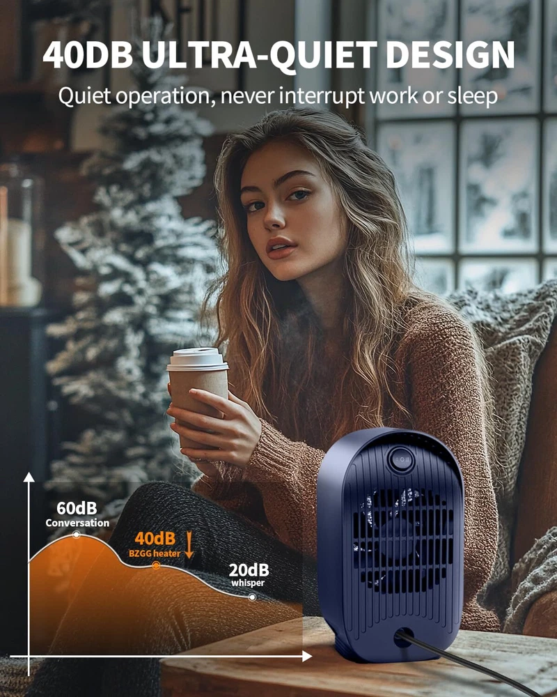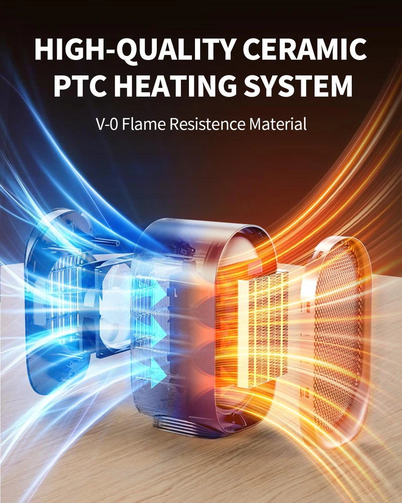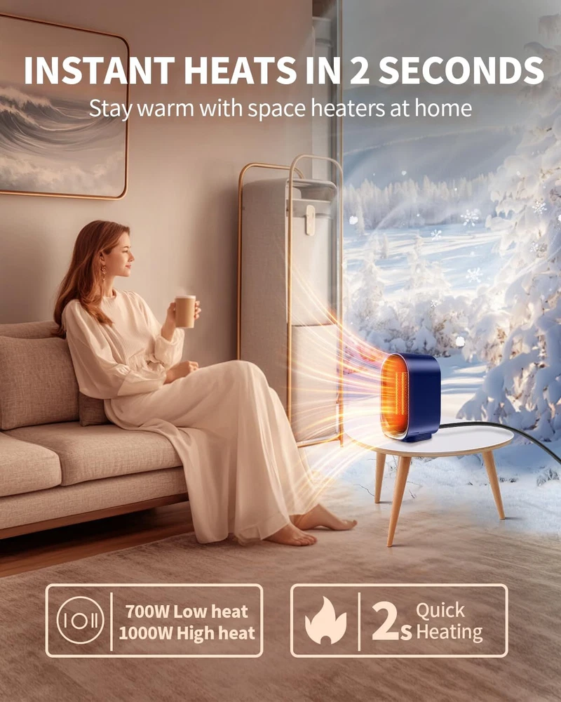 đŸ”„ă€2S FAST HEATING】 space heater used the advanced PTC ceraming heating technology, the electric heaters heats up 200 square feet in seconds more efficiently and fast,letting you feel fast, balmy heat straight away. đŸ”„ă€TIP-OVER & OVERHEAT PROTECTION】 small heater for indoor use quipped with a anti-tilt switch, the mini heaters will be switched off automatically when the heater tilts more than 45 degrees from the ground or the temperature of the heater is too high in the process of use. đŸ”„ă€2 HEATING MODE】 portable heater for bedroom designed with 2 heat mode, bringing you proper warmth as you need. Our ceramic heater for indoor use will keep you comfortable at all times in the winter. đŸ”„ă€MINI PORTABLE HEATER】 5.28 x 4.45X 8.5 inch. Portable mini heater with build in carry handle easy to carry. 2 adjustable tempreture of the desk heater equips with stable warmth for small areas. The length of the cord is about 4ft to allow for unobstructed use. đŸ”„ă€SAFE TO USE】Offering quiet operation and rugged construction, making it a perfect choice for bedrooms and living areas. Meanwhile, the use of high-quality fire-resistant materials will provide security protection for your family. UL is Listed for the USA to keep your safety.