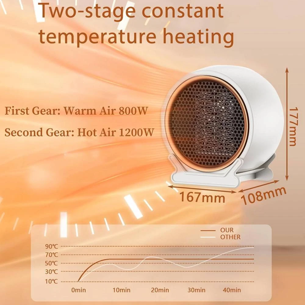 Note: . Pl ease don't cover the fan when the machine working. Please don't use it for a long time. There is no light in the use of the product, and the picture is a display effect. Factory mass production, the product may have small scratches,we promise all products are brand new. F eatures: Energy Saving Fast Heat Mode Our fan heater has 2 heating levels and fan mode: 1200W (high heat) / 800W (low heat) ,the low setting does not require much electricity to work, reduce your electricity bills by heating with this energy saving space heater. Ceramic heaters that heat up quickly, instantly and circulate warmth through the air, mini space heaters give off big heat! 3S Fast Heating, Instant Warmth This portable Space Heater, PARIS RHÔNE Ceramic Heaters for Home Low Energy, 1200W, Portable Heater for Office, Study[Energy Class A++] heater comes with three modes, including fan mode, 800W low heating and 1200W high heating. High-efficiency heaters indoor portable electric heater can emit a lot of heat within 3S, quickly indoor heater keeping your large room cozy and comfortable all the time. Quiet Operation Due to the ultra-quiet design(30-50db), you can hardly feel the operation of the room heater during use, and you will not be disturbed during sleep. Portable Mini Space Heater This electric heater with a handle design is very convenient to carry and move, and can be placed wherever you need it. The space heater for indoor use is very small, with a size of 12*11.5*21.5 cm, which does not take up too much space. Even in the cold winter, the mini heater can give you a warm night. Descriptions: Name:Smart Heater Fan Type:Heater Fan/Space Heater Features:800/1200W Power,PTC Material,Overload Protection,2 Levels Winds,Portable Design,Tip-Over Protection,3s Heating Rated voltage:220V-240V,50/60Hz Power:800/1200W Gear: low gear 800W, high gear 1200W Noise: ≤50dB Applicable area: 10-20 ㎡ Heating mode: PTC ceramic heating Product size: 16.5*11*18cm Single weight: 0.88kg Plug:US Plug Color:White Packages: 1x US Plug Heater fan 1x Manual