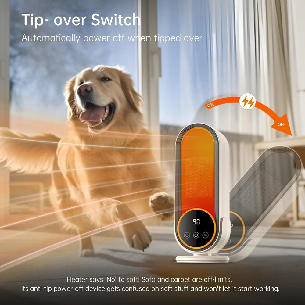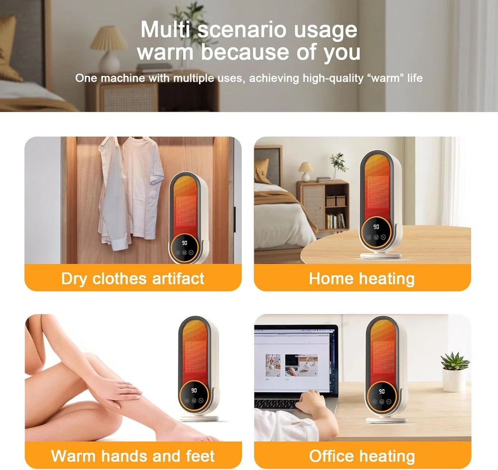 Space Heater Indoor - Energy Efficient Portable with Adjustable white Product Details Brand: cinbasr Special Feature: Energy Efficient, Adjustable Temperature, Electronic Thermostat, Overheat Protection, Protable Color: white Form Factor: Dish Indoor/Outdoor Usage: Indoor Product Dimensions: 3"D x 12"W x 3"H Recommended Uses For Product: Office, Tent, Desk, Home Mounting Type: Tabletop Mount Room Type: Kids Room, Bedroom, Living Room, Home Office, Study Room Heat Output: 1200 Watts Fuel Type: Electric Voltage: 1.2E+2 Volts (AC) Item Weight: 2.35 pounds Manufacturer: Cinbasr Country of Origin: China Item model number: E68S Power SourceHeating Method: acForced Air, Convection Rapid and Efficient Heating:Our Space Heater Indoor uses 1200W PTC ceramic technology to heat up rapidly within seconds. This powerful yet small space heater ensures efficient warmth for your home or office, making it the ideal electric heater indoor solution for both small and large rooms. Unmatched Safety Features:Designed with tip-over and overheat protection, this tower heater provides reliable safety as an indoor space heater . Made from high-temperature resistant materials, it's perfect for everyday use as a heater for bedroom . Whisper-Quiet Operation:Enjoy ultra-quiet heating with noise levels as low as 35 decibels from our space heaters for indoor use . Ideal as a desk heater for your workspace or a peaceful room heater for bedroom . Versatile and User-Friendly Modes:Featuring adjustable thermostat settings and intelligent timing, this portable heater offers customized comfort. It’s perfect for use as an office heater or heater for indoor use . Control your heating schedule effortlessly with the smart timer. Compact Design with Built-in Handle:13*4.6*4.6 personal portable heaters for indoor use is designed for convenience and energy efficiency. The lightweight build and built-in handle make it easy to carry, whether as a heater for a large room or a small heater for personal use.This ceramic heater is energy-efficient, helping to reduce consumption and costs. Protection Method:Overheat protection Blow out cold air from the product, turn off the product, let it sit for 10 minutes, and then restart. (45 ° tipping protection) - If the product turns or tilts, The space heater will automatically turn off the power, straighten and restart.