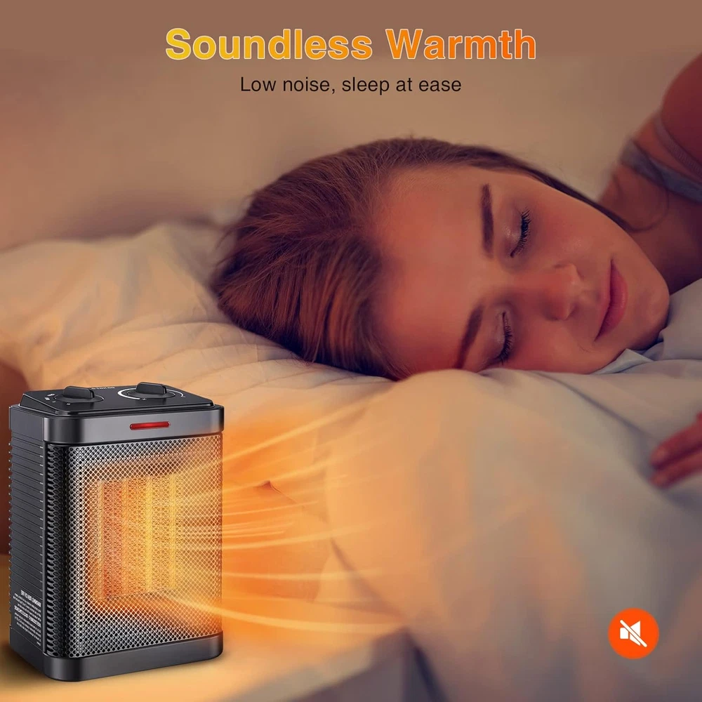 MULTI-HEATING MODES: 3 desired comfort settings, High Heat (1500 watts), Low Heat (900 watts), and Natural Wind, make this electric space heater perfect for warming up your home or home office area. Adjustable temperature settings help to quickly increase the temperature based on the thermostat control. DEFEAT COLD IN 2S: Ceramic space heaters are a great way to save floor space while beating the cold. Our advanced PTC ceramic heating element adopts quick heat technology to achieve rapid heating within 2 seconds. Dual wattage 900/1500W heat provides you with constant comfort. RELIABLE SAFETY PERFORMANCE: Our space heaters have built-in safety overheating and tip-over protection, the electric heater will auto turn off if accidentally tipped over or overheated cannot be controlled or surveilled, and will not harm children and pets. The power indicator light lets you know when it's plugged in. SAFE AND HASSLE-FREE: This tabletop heater features safety features to protect against tip-over and overheating. Made of premium-quality flame retardant material to avoid fire accidents. And certified by the United States Electrical Testing Laboratory (ETL). Your family enjoys being wrapped in the safe and quiet heat through dark and cold months. COMPACT SPACE SAVINGS: Dimensions are 6.3" long, 4.73" wide, 8.66" high, and weigh 2.43 lbs. Small indoor electric heaters with two heating modes are an excellent design for homes, dorms, studios, and offices. Adopt the convection heating method to create a comfortable environment. Product Description Enjoy a Warm Winter Heater Indoor Your Safety Guard Find the Right Space Heater for you Add to Cart Add to Cart Add to Cart Add to Cart Add to Cart Customer Reviews 4.3 out of 5 stars 357 4.4 out of 5 stars 2,798 4.4 out of 5 stars 2,798 4.3 out of 5 stars 357 4.5 out of 5 stars 306 Price $19.48 $ 19 . 48 $22.89 $ 22 . 89 $25.99 $ 25 . 99 $25.49 $ 25 . 49 $17.99 $ 17 . 99 Size 6.3" x 4.73" x 8.78" 6.3" x 4.73" x 8.66" 6.3"x4.72"x8.74" 6.3" X 4.72" X 8.54" 5.51" x 3.94" x 7.6" Mode Options 900W/1500W/Fan 900W/1500W/Fan 900W/1500W/ECO/Fan 900W/1500W/ECO/Fan 700W/1000W/Fan ETL Listed ✓ ✓ ✓ ✓ ✓ Safety Features Overheat, Tip-over Protection Overheat, Tip-over Protection Overheat, Tip-over Protection Overheat, Tip-over Protection Overheat, Tip-over Protection Control Knob Control Knob Control Touch Control Touch Control Knob Control Voltage 120V, 60Hz 120V, 60Hz 120V, 60Hz 120V, 60Hz 120V, 60Hz
