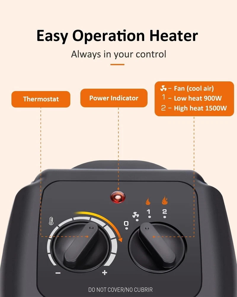 【3 Modes with Thermostat Control】3 Heat Settings; LOW: 900 watts of heat; HIGH: Output heat faster and hotter at 1500 watts; FAN: Blow out cool winds. Electric space heater with thermostat manual control, designed for comfort and warmth, keeping your small room at a set temperature and saving your electricity bills. 【1S Fast Warm-Up】With the PTC ceramic heating technology and high-speed fan, this small space heater can warm you in 1 second! Range up to 200 sq.ft. Saving electricity bills by heating the small space required, instead of using other centralized indoor space heaters. Stay warm and comfortable in your space in the cold once you pick up this energy efficient space heater. 【Multiple Advanced Safety Design】 Overheat and Tip-Over Protection: Aut-off when accident happens, perfect for family with kids and pets; V0 Flame Retardant Material; ETL Listed. The Shinic ceramic space heater, a solid choice for small room,office, living room and bedroom! 【Quiet Space Heater】The operating sound of the office sapce heater is less than 38 dB, quiet enough for most people to use in a bedroom while sleeping, a perfect desk space heater never disturbs you when you sleep or work. 【Space-Saving Desk Space Heater】Dimensions: 6.3 x 5.5 x 9.3 inches; small space heater for office under desk quiet, warm and space-saving. Warm up your body/feet/legs in an instant, but only take a small space. Easy-to-move portable space heaters for indoor use with convenient carry handle and 6 Ft long cord.