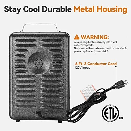 Return Policy Fast Delivery Trusted seller Space Heater,1500W Milkhouse Heater with Thermostat, Stay Cool Durable Metal Housing, Overheat protection, 3-Prong Plug, Tip-Over Auto Shut Off, Utility Heater for Garage, Bedroom, Greenhouse Product Description 【Durable & Portable Space Heater】The milkhouse heater features a heavy-duty, all-metal housing that is durable and strong enough to last for years. Equipped with an stay-cool convenient carry handle, help you easy to move this heater when it's working 【Fast Heating】The greenhouse heater with thermostat, 2 heat settings and a natural wind mode. 1500W high-heat mode and 1300W low-heat mode, more efficient than the other space heaters, and the heat coverage up to 200 sq.ft. With heating element and powerful fan that blows out the heated air, to quickly warm your small greenhouse and garage 【3-Prong Plug for Advanced Safety】The milkhouse heater is designed with a 3-prong plug, which is safer than most 2-prong plug milk house heaters on the market. This electric space heater is safer to use in every corner of your house and is suitable for living rooms, workshops, garages and greenhouses 【Tip-over and Overheat Protection】 The space heater is also equipped with an overheat protection device, that will automatically shuts off the heater once the internal temperature becomes too high. In addition, The 's unique built-in anti-tip device will automatically turn off the heater when the product is tilted or accidentally dropped to prevent fire 【Adjustable Thermostat】It's easy to find the perfect temperature and take control of your comfort space with the adjustable rotary thermostat on this compact utility heater 【The Customer Service】The Customer Service Department are to help you with any After-sales issues. Once you receive the product, please check the appearance of the product immediately and test the product to see if the heater works properly. If you are not satisfied with the product in any way, please feel free to contact our customer service team and we'll be happy to help! We that any questions you may have will be answered within 0-12 hours Shipping Returns Payment Shipping Shipping is FREE to all addresses other than APO/PO boxes in the lower 48 states. All our stock ships from US-based warehouses. Shipped via USPS or UPS (depending on location and package weight) Unless stated otherwise, all orders will ship within 24-72 hours of your payment being processed. Check our feedback to see the great reviews of FAST shipping we offer. Returns Seller does not accept returns Payment We currently accept payment via eBay managed payments only. Once payment is cleared, we will dispatch your shipment within 1-3 business days. Please refer to the "Shipping" tab for more information regarding shipping speed to your destination.