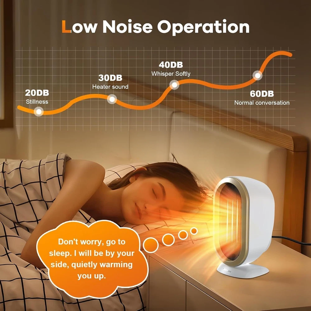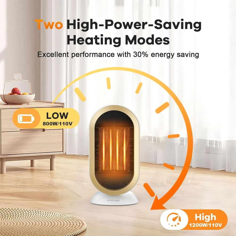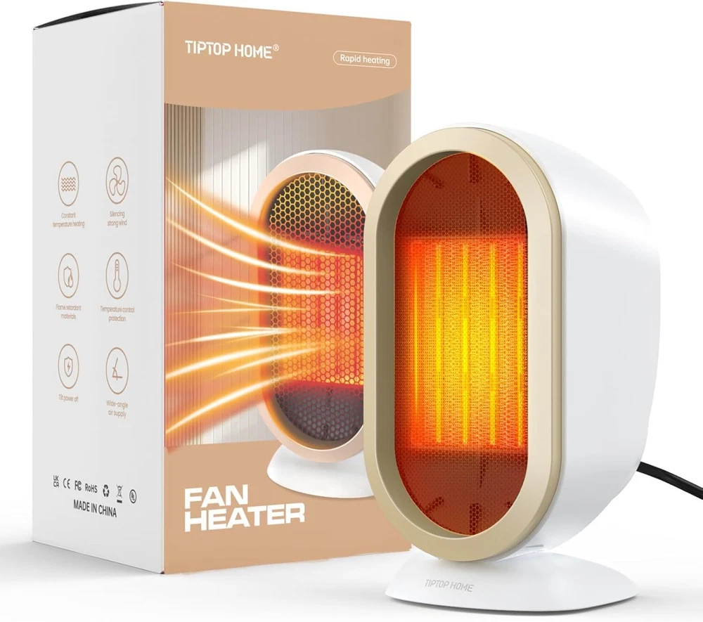 Portable space heaters for indoor use, Keep you warm and accompany you! Fully Assembled, PTC Technology.Advanced heating elements provide faster and more efficient heating than traditional heaters 🔥Main Features: 1.Heating material:PTC ceramic 2.Power:800W/1200W(2 modes) 3.Safety protection function: space Heater with tip-ove,overheat protection 4.Energy saving:30% 5. Size: 4.92*4.92*9.53 inch(LxWxH) 6. Weight: 900g 7.How to use: Please make sure that the electric desk heater switch is at the position of "o" before use.Press the temperature gear switch and adjustment:"0" is the power off key,"I" is the warm air gear,and "‖" is the hot air gear. ⚠︎Safe Caution: ▶The space heater must not be placed under a power outlet.A reliable power outlet must be used.The capacity of power outlet, plug and power lead all should be above 10A. ▶Do not insert foreign bodies into the inlet and outlet.To avoid accidents,do not sot the space heater towards the power outlet,pug and power cord. ▶The space heaters for indoor use is strictly prohibited to be used in the environment of inflammable and explosive articles, dust and oil pollution.Keep the surrounding air circulating during using,and the ambient temperature should not exceed 30℃. Unplug the power when there is no one in the room. ▶Do not use this portable heater near the bathtub,shower head or swimming pool. ▶If the room heater breaks down, please contact the dealer or manufacturer for repair.Do not dismantle the machine for repair without authorization. ▶Do not put anything on the space Heaters.It is strictly forbidden to touch the protection net cover when the small heater is working to prevent hot scald.Please pay special attention to children. ⚡️ Warning: In order to avoid overheating of the body,do not block the air inlet and outlet of the heater fan with foreign matter! Package list: 1*space heater 1*user manual 🔥Fast Heating and Thermostatic Control: This electric desk heater build in PTC ceramic heating tech as well as high speed fan helps heat the room quicker, and covers the 200 square feet office or room in minute fast and effectively.Besides,our this room heater has a built-in temperature controller,which can make the temperature output stably, allowing you to enjoy a warm indoor temperature. 🔥Tip-over & Overheat Protection: The small space heaters for indoor use quipped with a switch to switch off the machine if it is over returned, the design of overheat protection will switch off the appliance automatically in case of severe overheating.No more worrying about your dog or kitten knocking over the space fan and getting hurt. 🔥Space Heater with 2 Heat Settings: High Heat (1200w) / Low Heat (800w).The button on the back can control low temperature/off/high temperature, which is convenient to use.Our energy-efficient interior space heater features 4 different heat settings (LOW, HIGH), so you can tailor it to your exact needs. Instead of wasting a fortune on central heating, you can warm just the spaces you actually use. 🔥Low Noise To Use:The noise of the electric desk heater is lower than 52 dB level, the small space heater is use in the bedroom and office when falling asleep and working. Our mini heater fan can warm up space you need when studying, reading, working, and watching the movie without disturb. 🎁Perfect Gift Idea: Our space heaters for indoor use are packaged in a beautiful gift box and are the great gift for family, parents and friends. It is worth to mention that the compact design of the space heater allows it to be installed everywhere, suitable for living room, bedroom or office.Electric heater is a heartwarming gift.Also can send warm greetings to your family members or friends with this warm space heater
