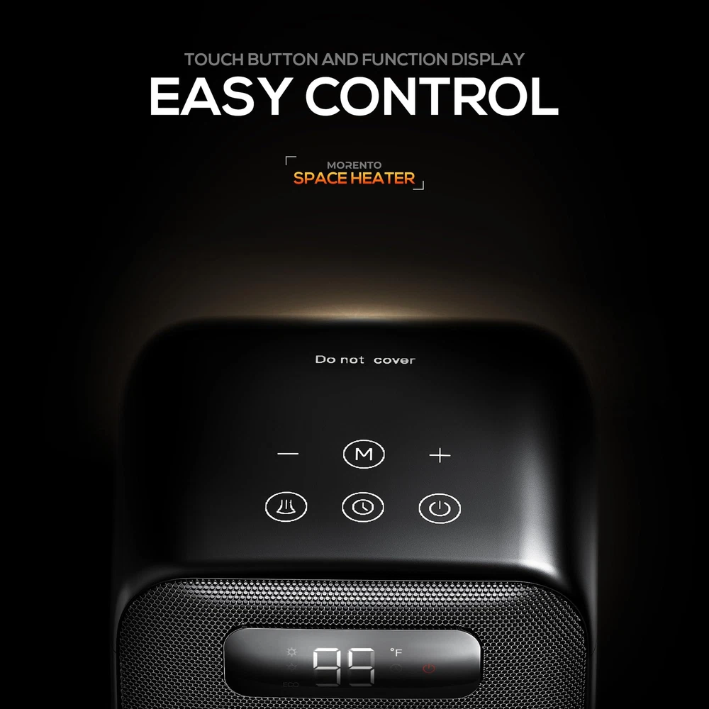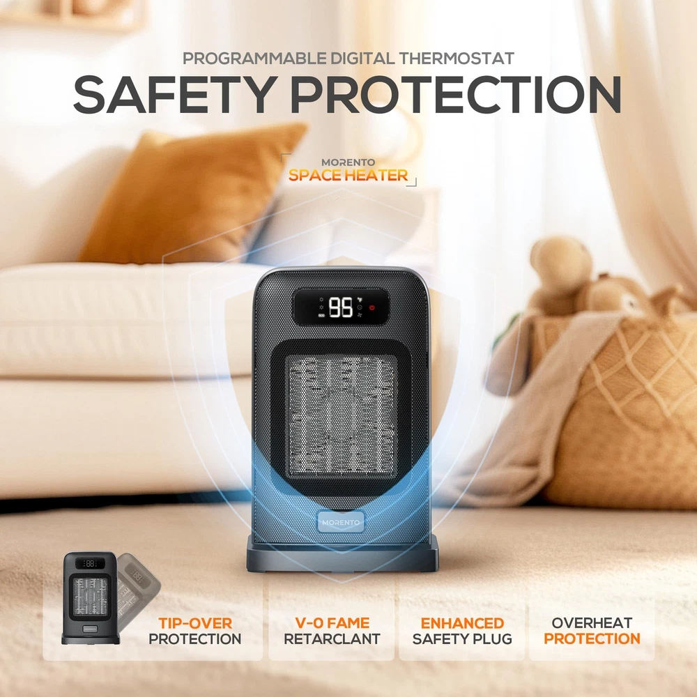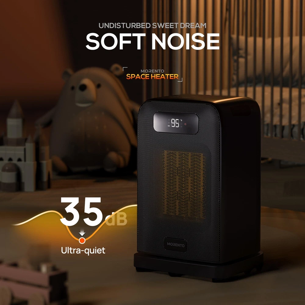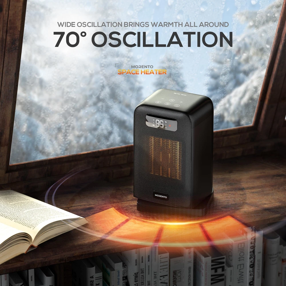 2-in-1 Heater Fan: This desk heater gives you year-round comfort in two heating modes (1500W and 900W) and fan mode. Small space heaters for indoor use allow you to adjust the temperature of the room where your space heater is located, as needed, in any season. Turn off the electric heaters for indoor use on the desk, and the LED screen of the space heater will display a 30-second countdown, as the small space heaters for indoor use will continue to run to blow out the remaining heat. Ultimate temperature control: Our desk heater have 2 different heating Settings as well as ECO mode, so you can customize small space heaters for indoor use to your exact needs. In ECO mode, the portable heaters for indoor use automatically selects the optimal heating power based on the difference between the set temperature (41-95℉) and the ambient temperature, and the electric heaters for indoor use saves you energy while maintaining comfort. Multi-protection Security system: This small space heaters for indoor use comes with a built-in automatic safety shutdown system. This small space heaters for indoor use ensures that it automatically shuts down if it overheats or is knocked over, giving you peace of mind and preventing potential accidents that can happen with electric heaters for indoor use. Small space heaters for indoor use automatically turn off after 24 hours of continuous operation. Quiet and fast heating: Enjoy the quiet and fast heating of our small space heaters for indoor use. This indoor portable heaters for indoor use emits less than 35 decibels of noise, which is quiet enough that most people will use an electric heaters for indoor use while sleeping in their bedroom. This portable heaters for indoor use is designed to be easy to move, allowing you to move small space heaters for indoor use from room to room as needed. User-friendly LED display: Take control of your comfort experience with the intuitive LED display of the desk heater to clearly view the room environment of the small space heaters for indoor use. Easily set up an electric heaters for indoor use to suit your heating needs, ensuring you enjoy a peaceful sleep or a productive work environment where there is a portable heaters for indoor use. Easy to use remote control: The desk heater comes with a remote control that allows you to control the temperature or timing function of your small space heaters for indoor use. The space heater remote controls all Settings with ease, allowing you to adjust the heat from anywhere in the room. You can remotely turn on/off a small space heaters for indoor use, adjust the portable heaters temperature, set the space heater timing, and turn on/off the small space heaters for indoor use oscillation. Automatic oscillation mode: 70°wide oscillation helps the desk heater to distribute the warm air more evenly to all corners of the room, easily start the small space heaters for indoor use oscillation mode, experience the rapid heating of the electric heater, the oscillation function allows the portable heaters for indoor use to quickly heat your space, perfect for sudden cold waves. Fit your lifestyle: This desk heater is easy to carry and seamlessly blends into any room, be it a bedroom, living room or office, providing warmth and comfort where you need a small space heaters for indoor use. The portable heaters for indoor use also has convenient extra features to give you more surprise experiences (mute, memory function).