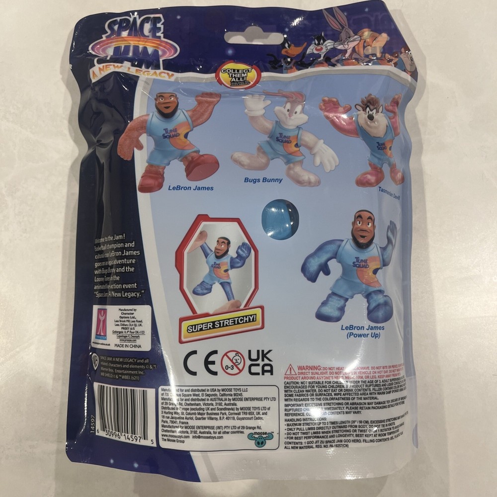 The Goo Jit Zu Space Jam A New Legacy LeBron James Goo Heroes action figure by Moose Toys features a hero character from the Space Jam franchise. Made of plastic and rubber, this multicolored figure is designed to stretch and transform. Standing at 5 inches tall in a 1:16 scale, this 2021 release is part of the Heroes of Goo Jit Zu series, inspired by the movie Space Jam: A New Legacy. Additionally, the figure is adjustable and comes in its original packaging, making it a fun and collectible addition for fans of basketball and cartoon characters.