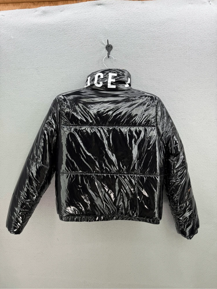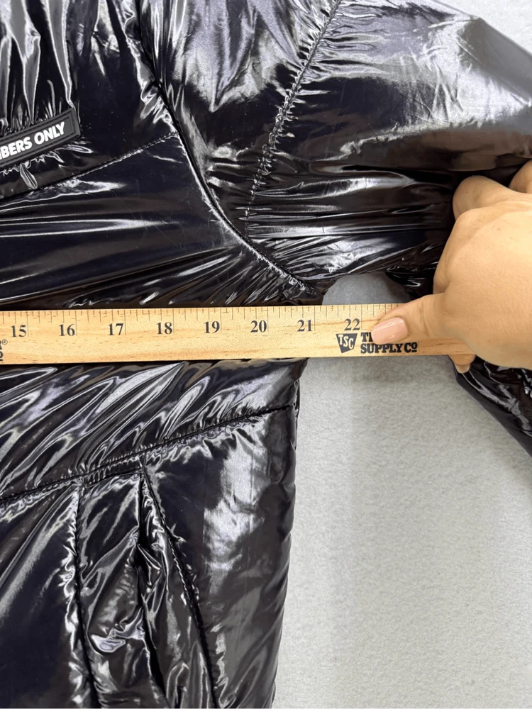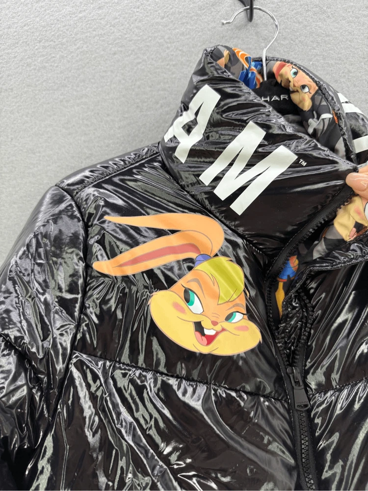 Members Only x Space Jam High Shine Puffer Jacket - Black Size M Ball out in cartoonish style with the Members Only x Space Jam A New Legacy Hi Shine black puffer jacket. This shiny black jacket comes with a mock neck collar and classic puffer construction for serious coziness points, while the mixture of Looney Tunes GUC. No stains or holes. Pet free/smoke free home. Please check all photos for details.