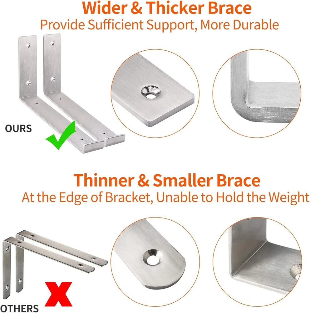 Space-Saving 90-Degree Stainless Steel Shelf Brackets - 4-Pack Brushed Nickel ‹ › ‹ › ‹ › ‹ › ‹ › ‹ › ‹ › ‹ › ‹ › ‹ › Space-Saving 90-Degree Stainless Steel Shelf Brackets - 4-Pack Brushed Nickel Features: Constructed from premium-grade stainless steel for lasting durability. Brushed nickel finish ensures a sleek, modern look that resists rust, tarnish, or corrosion. No bending or warping, with the ability to bear an impressive load of up to 350 lbs per pair. Dimensions: 11.25" x 6" x 1.5", designed for use with an 11.25" wide lumber board (wood plank not included). Easy installation with included high-quality anchors and screws. Innovative J-shaped design offers exceptional stability and support. Benefits: Enhance your space with elegant and strong brackets suitable for various applications. Create functional storage solutions while organizing your space with style. Perfect for indoor and outdoor use: transform your garage, laundry room, backyard, and more. Ideal for displaying decorative items, photos, or as a practical workbench. Supported by a 100% money-back guarantee and lifetime free replacement for your peace of mind. Why Choose Our Stainless Steel Shelf Brackets? Elevate your home organization with our Space-Saving 90-Degree Stainless Steel Shelf Brackets. Crafted from premium-grade stainless steel and featuring a sleek brushed nickel finish, these brackets marry elegance with strength—capable of supporting heavy loads while maintaining a timeless appearance. Designed with the DIY enthusiast in mind, our simple installation process allows you to create custom shelving solutions that adapt to your needs. Whether it’s for your garage workstation, a decorative shelf in your living room, or an efficient laundry room setup, our brackets offer the perfect balance of function and sophistication. Experience the difference with brackets that are built to last! Purchase your 4-pack today and enjoy the aesthetic advantages while effortlessly organizing your space. Shipping Free & Fast Shipping - We offer free shipping to most of the USA with a normal delivery time of 3-7 days. However, due to the current situation, additional delivery time (up to 3 weeks) may be required for some items. Alternative Carriers - We may use alternative carriers (e.g. USPS, FedEx, UPS, etc.) to ensure your package arrives safely and on time. Due to the use of multiple carriers, we are unable to provide a tracking number automatically. Handling Time - Orders are processed and shipped within 1-2 business days of receiving cleared payment. Shipping Restrictions - Shipping to Alaska, Hawaii, Puerto Rico, Guam, and other US territories may incur shipping charges or delivery restrictions. Please contact us before ordering, or your order can be refunded/cancelled. State Restrictions - There may be restrictions based on your state of purchase. For example, certain items may not be shipped to California due to state regulations. Contact for Tracking Updates - If you require tracking updates or have any concerns about the delivery of your order, please feel free to contact us, and we will be happy to assist you. Return 30-Day Hassle-Free Returns - We want you to be completely satisfied with your purchase. If you are not, you can return the item within 30 days of receiving it for a full refund or exchange. Easy Return Process - To start a return, simply contact us and we will provide you with a prepaid return shipping label and detailed instructions. Restocking Fee - There are no restocking fees for returns. However, the buyer is responsible for return shipping costs if the return is not due to a seller's error. Refund Processing Time - Refunds will be processed within 5 business days of receiving the returned item in its original condition. Payment We accept all major credit cards, PayPal, and Apple Pay for your convenience. Your payment information is secure and encrypted to ensure a safe and seamless transaction. Please complete your payment within 3 days of purchase to avoid any delays in shipping. Feedback Your feedback is extremely important to us. We strive to provide the best products and customer service possible. If you are satisfied with your purchase, please take a moment to leave us a positive review. If you have any concerns or issues with your order, please contact us before leaving negative feedback. We are committed to resolving any problems and ensuring your satisfaction. Contact Us If you have any questions or concerns, please feel free to reach out to our customer support team. You can contact us through the eBay messaging system. We are available Monday to Friday, 9:00 am to 5:00 pm EST, and we will do our best to respond to your inquiry within 24 hours. Buy it now and enjoy a pleasant shopping experience! UPC: Not Set Unit Quantity: 4 Set Includes: Shelf Brackets Material: Stainless Steel Mounting: Wall Mounted Features: Heavy Duty,Space Saving,Easy Installation Room: Bedroom,Dining Room,Kitchen,Garage,Laundry Room,Family Room Department: Adults Theme: Space Year Manufactured: Not Set Required Tools: No Tools Required Brand: Unbranded Item Height: Shelf Brackets Item Length: Shelf Brackets Item Width: Shelf Brackets Number of Shelves: Shelf Brackets Type: Shelf Brackets Pattern: Not Set Style: Contemporary/Modern Color: Brushed Nickel Number of Items in Set: 4 Door Mechanism: Not Set Maximum Weight Capacity: 350 lb Item Weight: 6.27 lb Product Line: Not Set Maximum Weight per Shelf: Not Set MPN: Not Set Model: Not Set Shape: L Shape Finish: Brushed Nickel Wood Tone: Not Set Distance from Floor to Bottom: Not Set Suitable For: Books Country/Region of Manufacture: Not Set Maximum Length: Not Set Minimum Height: Not Set Maximum Width: Not Set Minimum Length: Not Set Minimum Width: Not Set Maximum Height: Not Set Packaging: Flat Pack Time Period Manufactured: Not Set Manufacturer Warranty: Not Set Unit Type: lb Assembly Required: Not Set Additional Parts Requir