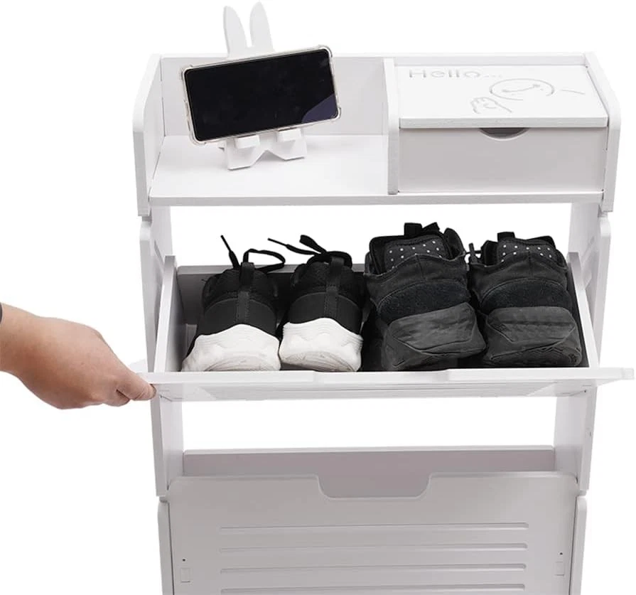 Shoe Cabinet Storage for Entryway, Modern Slim Shoe Organizer, Tipping