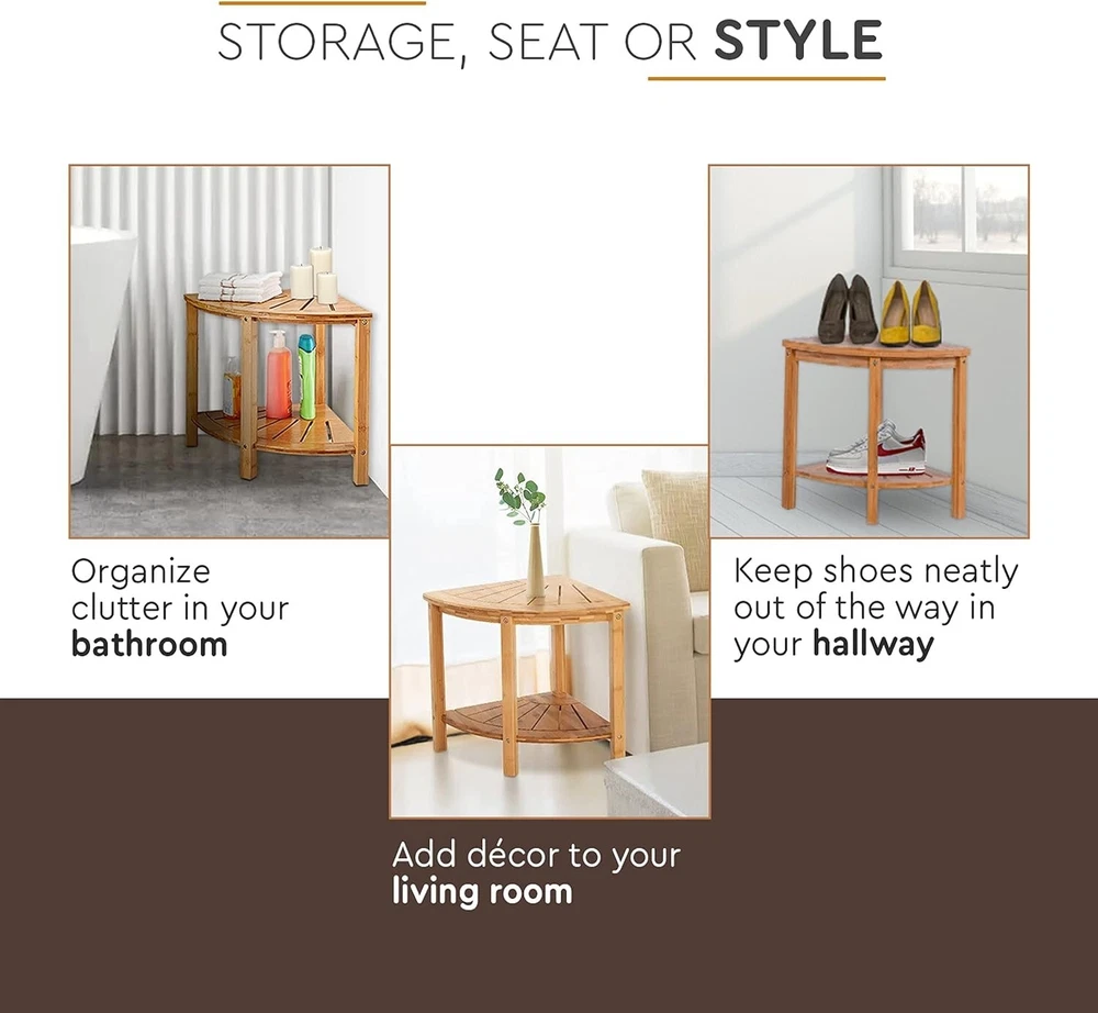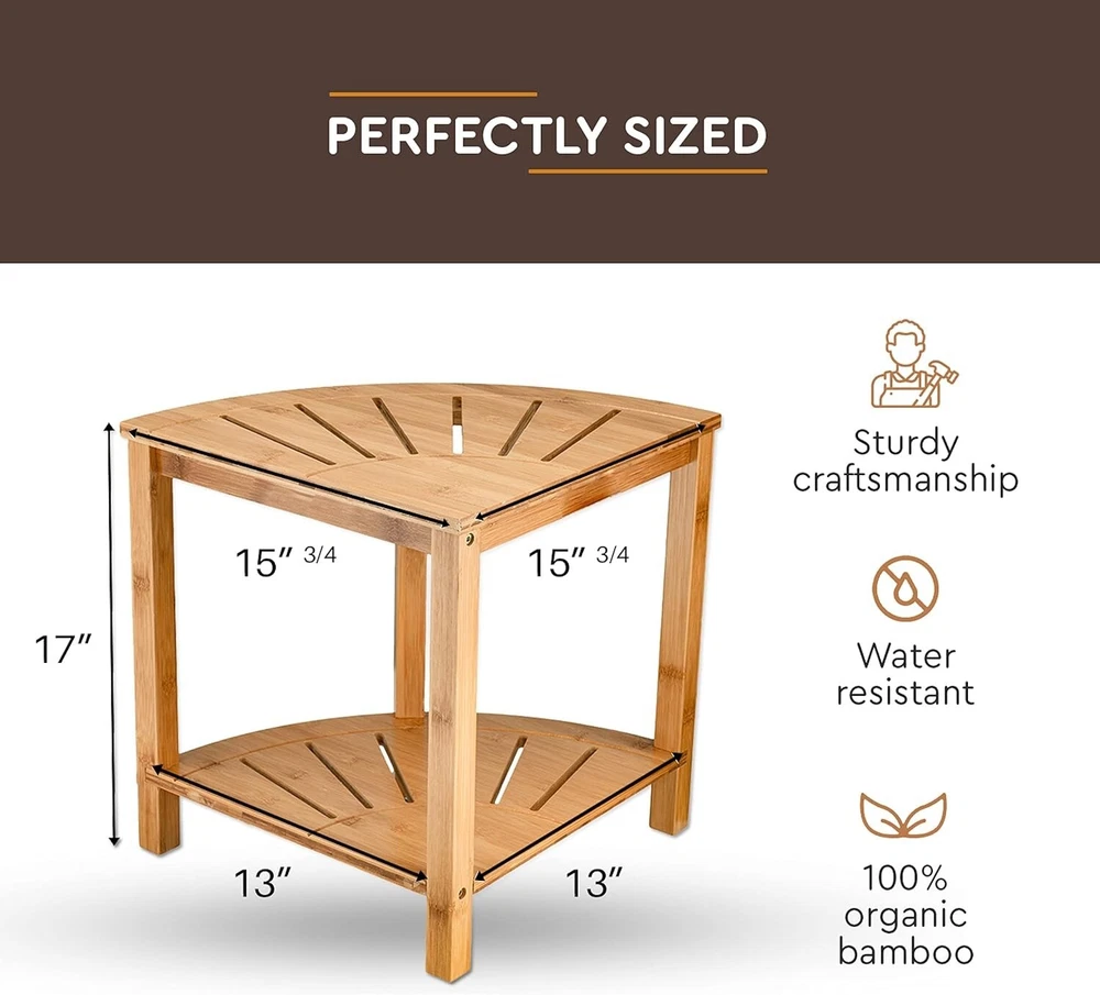 Space-Saving Premium Bamboo Corner Shower Bench - Bamboo Spa Shelf - Great Value ‹ › ‹ › ‹ › ‹ › ‹ › ‹ › ‹ › ‹ › ‹ › ‹ › Space-Saving Premium Bamboo Corner Shower Bench -Bamboo Spa Shelf -Great Value Features: Corner fit design, useful and pretty in every room. Made of natural, high-quality bamboo that doesn't warp in moisture. Bamboo shower shelf underneath for storage. Non-slip and non-slip rubber feet for stability. Lighter color and better appearance than teak shower seats. Lightweight and easy to move. Easy to assemble with all necessary tools included. Sturdy construction that can hold up to 250 lbs. Benefits: Space-saving design fits perfectly in any room. Durable and moisture-resistant bamboo material. Convenient storage shelf for towels, shoes, and more. Non-slip feet for added safety. Attractive and stylish addition to any room. Lightweight and easy to move for anyone. Cost-effective alternative to teak shower benches. Quick and easy assembly process. Why choose our Space-Saving Premium Bamboo Corner Shower Bench? Upgrade your bathroom or any room in your home with our Space-Saving Premium Bamboo Corner Shower Bench. Made of high-quality bamboo, it's not only durable and moisture-resistant, but it also adds a touch of style to your space. With its convenient storage shelf and non-slip feet, this bench is perfect for holding towels, shoes, and other essentials. Plus, it's lightweight and easy to assemble, making it a great value compared to teak shower benches. Don't miss out on this versatile and attractive addition to your home - order your Space-Saving Premium Bamboo Corner Shower Bench today! Shipping Free & Fast Shipping - We offer free shipping to most of the USA with a normal delivery time of 3-7 days. However, due to the current situation, additional delivery time (up to 3 weeks) may be required for some items. Alternative Carriers - We may use alternative carriers (e.g. USPS, FedEx, UPS, etc.) to ensure your package arrives safely and on time. Due to the use of multiple carriers, we are unable to provide a tracking number automatically. Handling Time - Orders are processed and shipped within 1-2 business days of receiving cleared payment. Shipping Restrictions - Shipping to Alaska, Hawaii, Puerto Rico, Guam, and other US territories may incur shipping charges or delivery restrictions. Please contact us before ordering, or your order can be refunded/cancelled. State Restrictions - There may be restrictions based on your state of purchase. For example, certain items may not be shipped to California due to state regulations. Contact for Tracking Updates - If you require tracking updates or have any concerns about the delivery of your order, please feel free to contact us, and we will be happy to assist you. Return 30-Day Hassle-Free Returns - We want you to be completely satisfied with your purchase. If you are not, you can return the item within 30 days of receiving it for a full refund or exchange. Easy Return Process - To start a return, simply contact us and we will provide you with a prepaid return shipping label and detailed instructions. Restocking Fee - There are no restocking fees for returns. However, the buyer is responsible for return shipping costs if the return is not due to a seller's error. Refund Processing Time - Refunds will be processed within 5 business days of receiving the returned item in its original condition. Payment We accept all major credit cards, PayPal, and Apple Pay for your convenience. Your payment information is secure and encrypted to ensure a safe and seamless transaction. Please complete your payment within 3 days of purchase to avoid any delays in shipping. Feedback Your feedback is extremely important to us. We strive to provide the best products and customer service possible. If you are satisfied with your purchase, please take a moment to leave us a positive review. If you have any concerns or issues with your order, please contact us before leaving negative feedback. We are committed to resolving any problems and ensuring your satisfaction. Contact Us If you have any questions or concerns, please feel free to reach out to our customer support team. You can contact us through the eBay messaging system. We are available Monday to Friday, 9:00 am to 5:00 pm EST, and we will do our best to respond to your inquiry within 24 hours. Thank you for supporting our small family business!