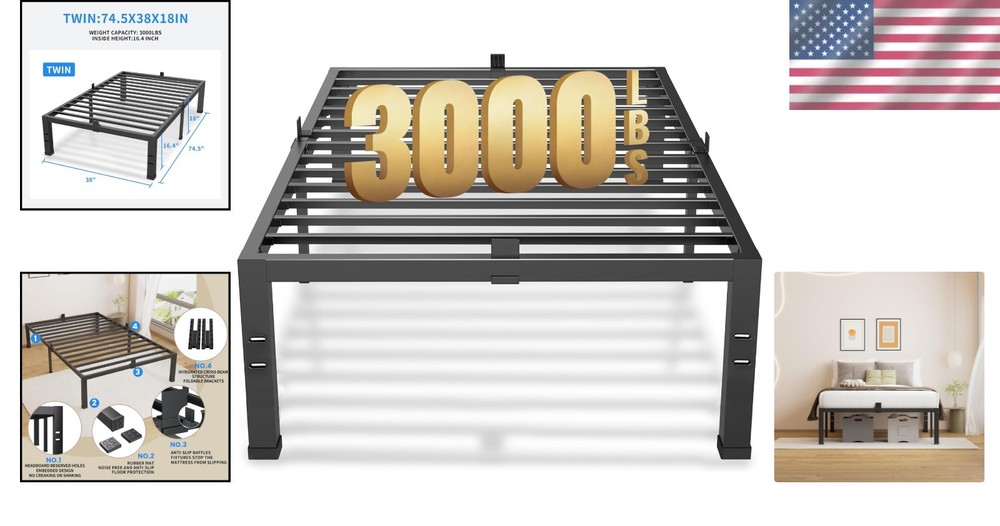 Space-Saving Twin Size Bed Frame with Integrated Storage - Black Metal Finish ‹ › ‹ › ‹ › ‹ › ‹ › ‹ › ‹ › ‹ › ‹ › Space-Saving Twin Size Bed Frame with Integrated Storage Black Metal Finish Product Features: Easy Assembly: Worry-free setup with straightforward instructions and foldable accessories. No handyman required. Superior Steel Slat Support: Dimensions: 74.5 x 38 x 18.0 inches; Weight Capacity: Up to 3000LBS. Built with a heavy-duty metal structure for unmatched durability. No Box Spring Needed: Innovative design fully supports your mattress, extending its life while eliminating the cost and hassle of box springs. Integrated Storage Space: Ideal height of 16.4 inches for efficient under-bed storage, keeping your space tidy and visually open. Squeak Resistant: Engineered for a noise-free experience with reserved holes for headboard attachment, adding elegance and style. Why Choose Our Twin Size Bed Frame? Experience the perfect blend of functionality and elegance with our Space-Saving Twin Size Bed Frame. Designed with busy lives in mind, this bed frame ensures easy assembly and superior support without the hassle of a box spring, giving you the freedom to focus on more important matters. With integrated storage, it declutters your space while enhancing its aesthetic. Plus, the noise-resistant design guarantees peaceful nights, ensuring restful sleep for you or your loved ones. Transform your bedroom into a sanctuary of comfort and style. Choose quality, choose efficiency - elevate your sleeping space with our Space-Saving Twin Size Bed Frame today! Shipping Free & Fast Shipping - We offer free shipping to most of the USA with a normal delivery time of 3-7 days. However, due to the current situation, additional delivery time (up to 3 weeks) may be required for some items. Alternative Carriers - We may use alternative carriers (e.g. USPS, FedEx, UPS, etc.) to ensure your package arrives safely and on time. Due to the use of multiple carriers, we are unable to provide a tracking number automatically. Handling Time - Orders are processed and shipped within 1-2 business days of receiving cleared payment. Shipping Restrictions - Shipping to Alaska, Hawaii, Puerto Rico, Guam, and other US territories may incur shipping charges or delivery restrictions. Please contact us before ordering, or your order can be refunded/cancelled. State Restrictions - There may be restrictions based on your state of purchase. For example, certain items may not be shipped to California due to state regulations. Contact for Tracking Updates - If you require tracking updates or have any concerns about the delivery of your order, please feel free to contact us, and we will be happy to assist you. Return 30-Day Hassle-Free Returns - We want you to be completely satisfied with your purchase. If you are not, you can return the item within 30 days of receiving it for a full refund or exchange. Easy Return Process - To start a return, simply contact us and we will provide you with a prepaid return shipping label and detailed instructions. Restocking Fee - There are no restocking fees for returns. However, the buyer is responsible for return shipping costs if the return is not due to a seller's error. Refund Processing Time - Refunds will be processed within 5 business days of receiving the returned item in its condition. Payment We accept all major credit cards, PayPal, and Apple Pay for your convenience. Your payment information is secure and encrypted to ensure a safe and seamless transaction. Please complete your payment within 3 days of purchase to avoid any delays in shipping. Feedback Your feedback is extremely important to us. We strive to provide the best products and customer service possible. If you are satisfied with your purchase, please take a moment to leave us a positive review. If you have any concerns or issues with your order, please contact us before leaving negative feedback. We are committed to resolving any problems and ensuring your satisfaction. Contact Us If you have any questions or concerns, please feel free to out to our customer support team. You can contact us through the eBay messaging system. We are available Monday to Friday, 9:00 am to 5:00 pm EST, and we will do our best to respond to your inquiry within 24 hours. Buy it now and enjoy a pleasant shopping experience! Unit Quantity: 26 pounds Compatible Mattress Size: Twin Frame Material: Metal Features: Easy Assembly,Storage Space,Squeak Resistant,Reserved Hole for Headboard,No Box Spring Needed,Heavy Duty Metal,Steel Slat Support Care Instructions: Twin Size Bed Frame Department: Adults Type: Bed Frame Color: Black Finish: Matte Style: Industrial Room: Bedroom Item Weight: 26 pounds Distance from Floor to Bottom: 16.4 inches