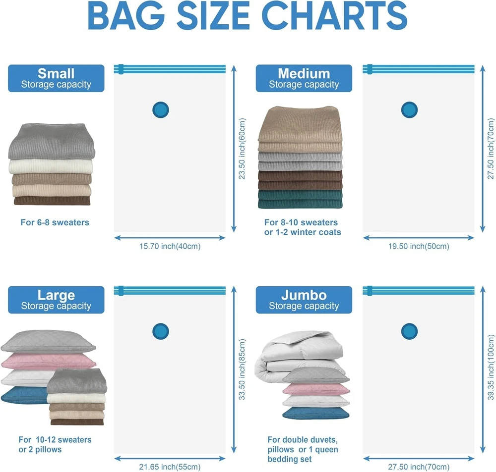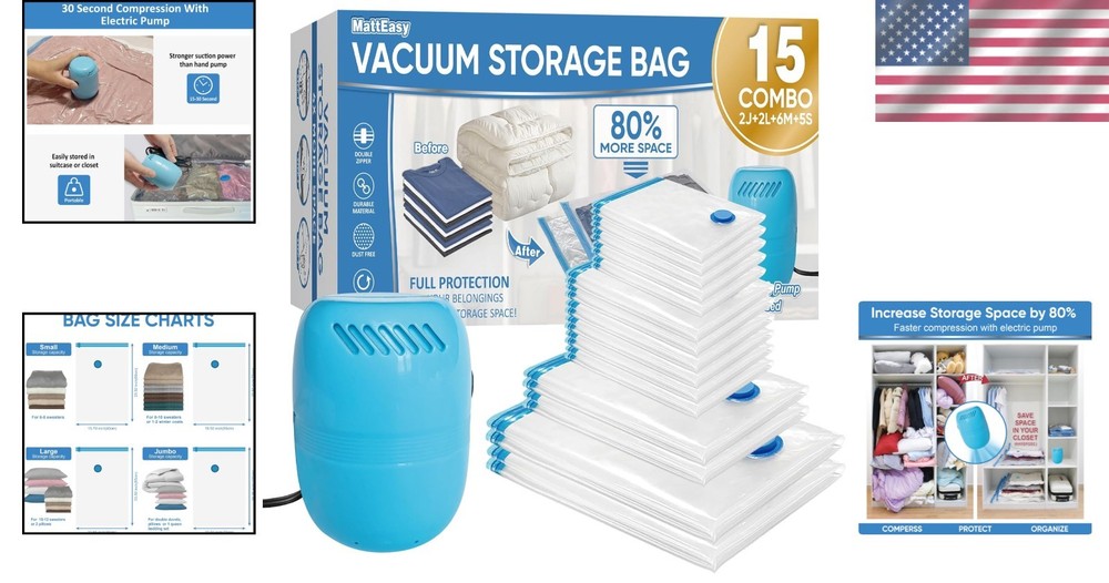 Durable Vacuum Storage Bags with Pump - 15 Various Sizes for Maximum Protection ‹ › ‹ › ‹ › ‹ › ‹ › ‹ › ‹ › ‹ › ‹ › Durable Vacuum Storage Bags with Pump - 15 Various Sizes for Maximum Protection Product Details: 15-pack combo vacuum storage bag includes: 2 Jumbo (39.35x27.5 in) 2 Large (33.5x21.65 in) 6 Medium (27.5x19.5 in) 5 Small (23.5 X 15.7 in) Increases storage space by up to 80% for travel and home storage. Perfect for storing clothes, beddings, comforters, blankets, and more! Key Features: Powerful Electric Air Pump: Ensures fast and efficient air removal for hassle-free compression. Durable & Reusable: Made from thick, flexible PA+PE material and can be reused multiple times. Lasting Airtight Protection: Unique double zip seal and triple seal turbo valve to prevent air from getting back in. Fast Vacuum Process: Simply place items, seal the zipper, and vacuum; perfect for various storage needs! Why Choose Our Vacuum Storage Bags? Transform your living space with our Durable Vacuum Storage Bags —an indispensable solution for all your storage needs. Our expertly crafted bags increase your available storage by 80%, allowing you to declutter wardrobes, closets, garages, and suitcases with ease. The accompanying electric air pump simplifies the process, offering swift and efficient compression within seconds. Whether for seasonal changes, travel, or organizing your home, these vacuum seal bags ensure your items are kept safe and protected from dirt, dust, and damage. Invest in space efficiency and preservation of your belongings—order your set of Vacuum Storage Bags today! Shipping Free & Fast Shipping - We offer free shipping to most of the USA with a normal delivery time of 3-10 businessdays. However, due to various situations, additional delivery time (up to 3 weeks) may be required for some items. Alternative Carriers - We may use alternative carriers (e.g. USPS, FedEx, UPS, etc.) to ensure your package arrives safely and on time. Due to the use of multiple carriers, we are unable to provide a tracking number automatically. Handling Time - Orders are processed and shipped within 1-5 business days of receiving cleared payment. Shipping Restrictions - Shipping to Alaska, Hawaii, Puerto Rico, Guam, and other US territories may incur shipping charges or delivery restrictions. Please contact us before ordering, or your order can be refunded/cancelled. State Restrictions - There may be restrictions based on your state of purchase. For example, certain items may not be shipped to California due to state regulations. Contact for Tracking Updates - If you require tracking updates or have any concerns about the delivery of your order, please feel free to contact us, and we will be happy to assist you. Return Please see our ebay return policy. We do not accept return on most products. This is to avoid customers mis-using ebay returns. All sales are final. Please be sure to check the return policy listed at the top of the listing. In rare cases, we may accept returns, if the buyer pays both ways shipping and 20% restocking fee. If you are un-sure of return policy of a particular item, please ask before buying. Payment We accept all major credit cards, PayPal, and Apple Pay for your convenience. Your payment information is secure and encrypted to ensure a safe and seamless transaction. Please complete your payment within 3 days of purchase to avoid any delays in shipping. Feedback Your feedback is extremely important to us. We strive to provide the best products and customer service possible. If you are satisfied with your purchase, please take a moment to leave us a positive review. If you have any concerns or issues with your order, please contact us before leaving negative feedback. We are committed to resolving any problems and ensuring your satisfaction. Contact Us If you have any questions or concerns, please feel free to reach out to our customer support team. You can contact us through the eBay messaging system. We are available Monday to Friday, 9:00 am to 5:00 pm EST, and we will do our best to respond to your inquiry within 24 hours. Buy it now and enjoy a pleasant shopping experience! UPC: Not Set Unit Quantity: 1 Material: Composite,PA,PE Features: With Umbrella Holder,Electric Pump,Airtight Seal,Reusable,Tear-resistant,Double Zip Seal,Triple Seal Turbo Valve Theme: Not Set Brand: Unbranded Item Height: Vacuum Storage Bags Item Length: Vacuum Storage Bags Item Width: Vacuum Storage Bags Type: Space Saver Bags Size: Extra Large Color: Blue Model: Not Set Item Weight: 3.12 lb Number of Items in Set: Fifteen-Piece Capacity: 5 lb Item Depth: 25 in MPN: Not Set Number in Pack: 15 Number of Compartments: 1 Original/Reproduction: Not Set Shape: Rectangular Pattern: Not Set Country/Region of Manufacture: Not Set Unit Type: Unit Personalize: Not Set